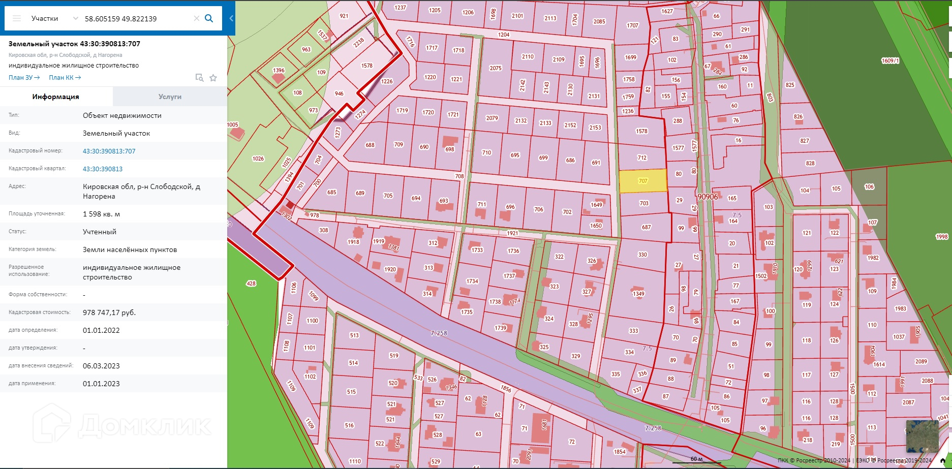 Кадастровый номер 43:30:390813:707. Проведено межевание.