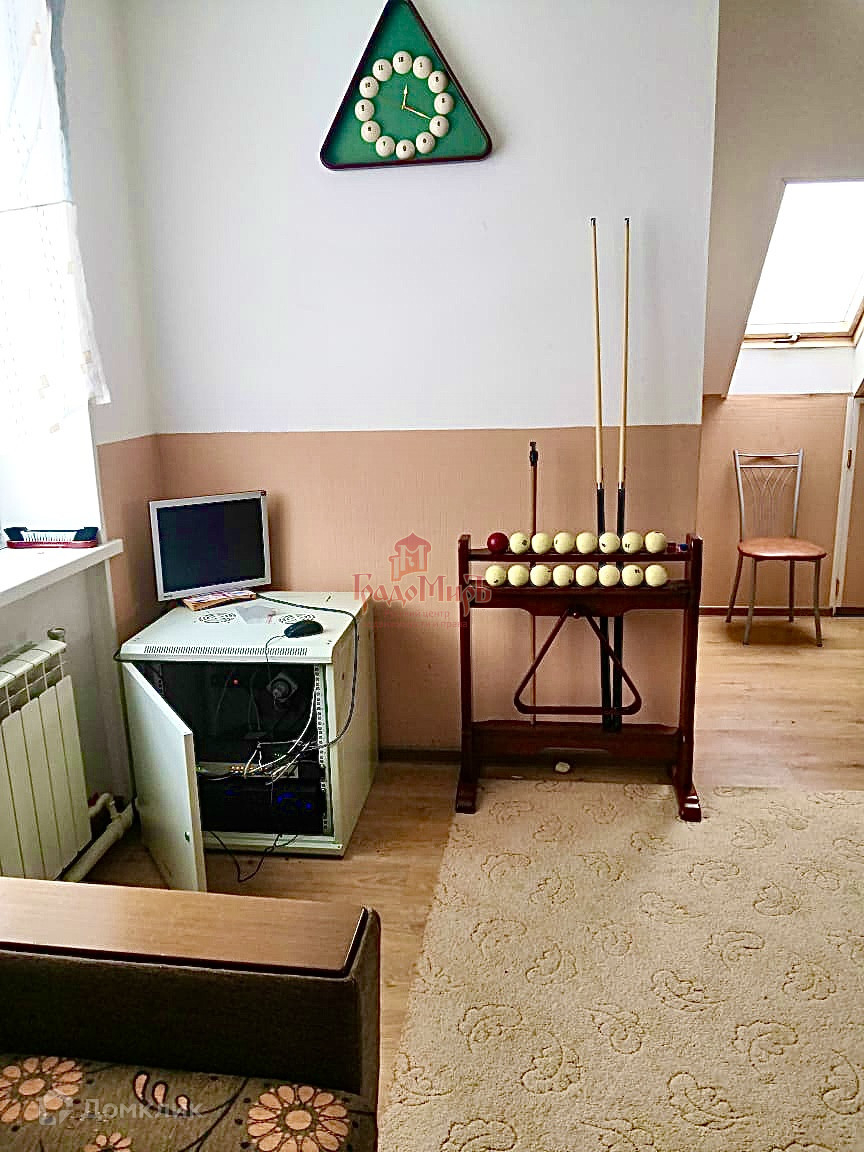 На первом этаже дома располагается прихожая, санузел, кухня и просторная большая гостиная с террасой через которую имеется выход в сад. Второй этаж 4 спальни и санузел, третий этаж мансарда с бильярдным столом.