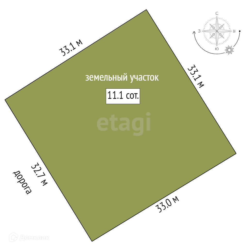 Площадь участка 11.1 сот.