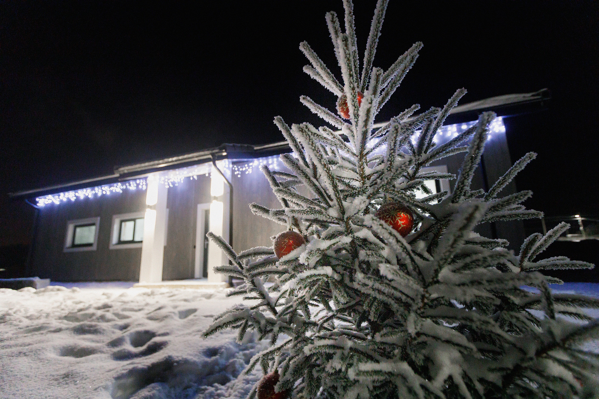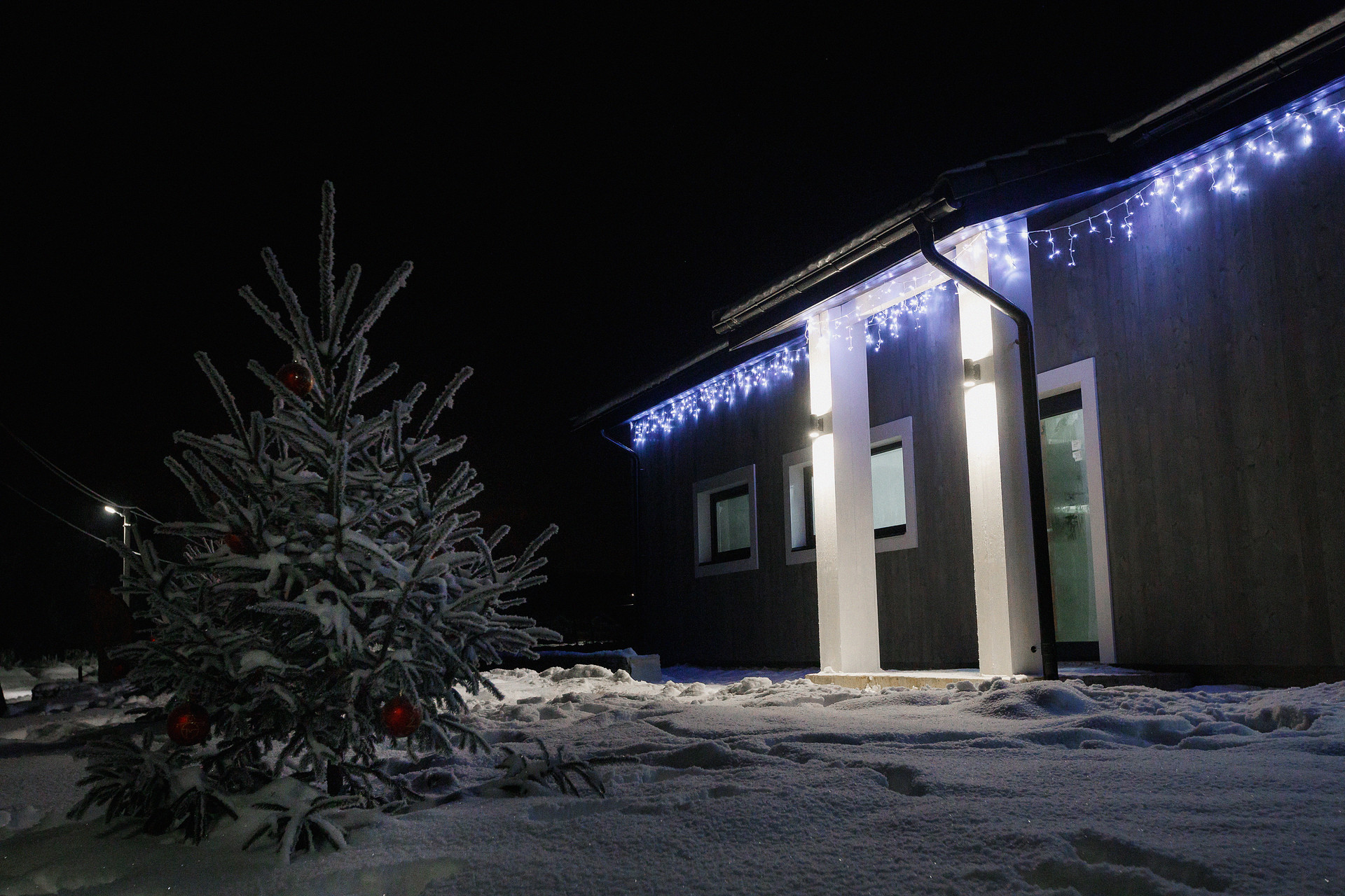 Сделано освещение фасада, крыльца, террасы.