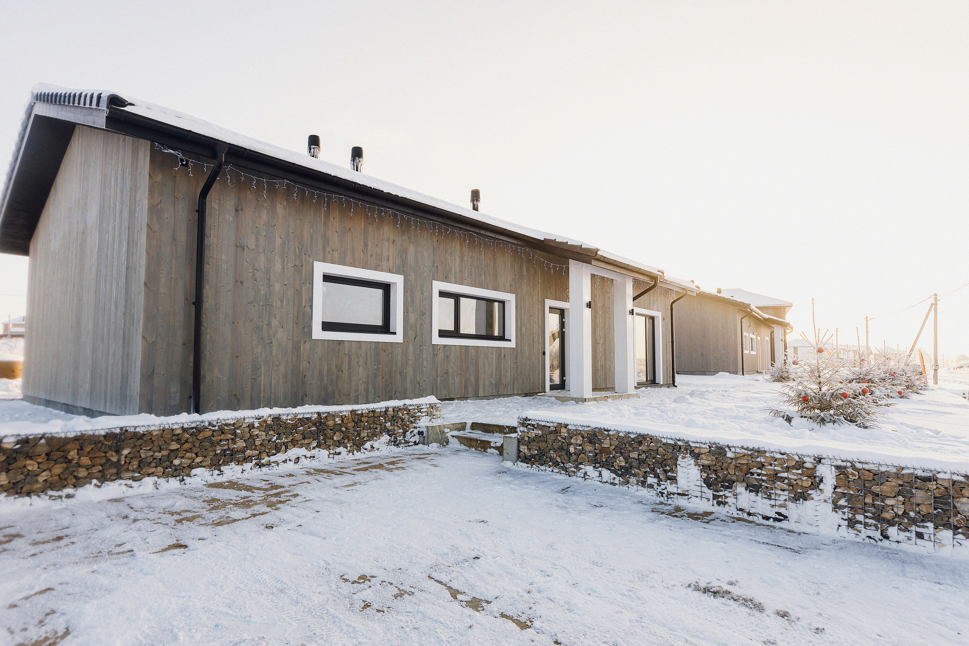 Выполнена система дренажа, ливневая канализация и отмостка.