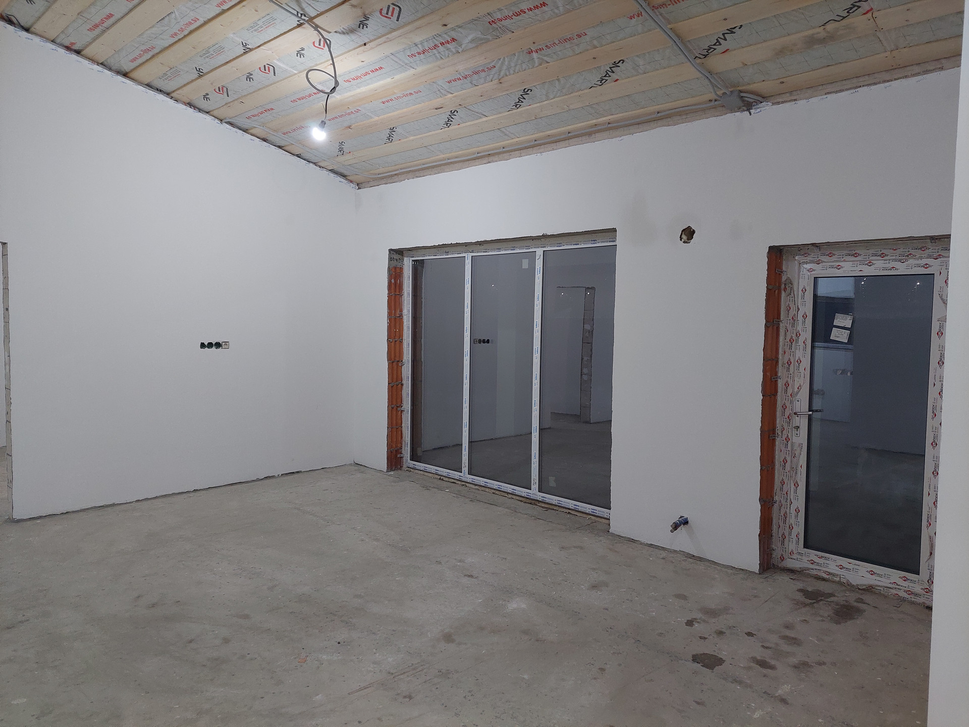 Фундамент - утепленная шведская плита (УШП) толщиной 300 мм. Стены возведены из керамического блока Wienerberger Porotherm 38 Thermo, наружные– толщиной 380 мм, внутренние – 150 мм.