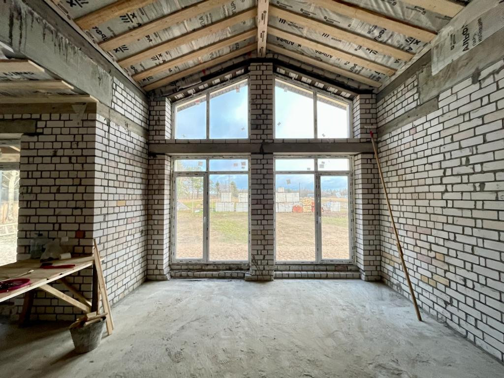 Коттедж сдается с закрытым тепловым контуром (окна, двери, утепление по потолку) – без отделки.