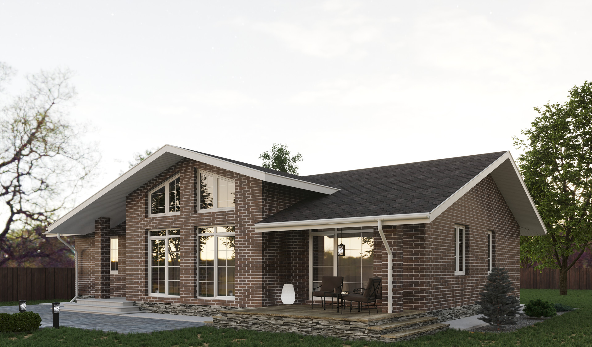 Строительство коттеджа с двойным светом общей площадью 125 м² на участке 8 соток (ИЖС)