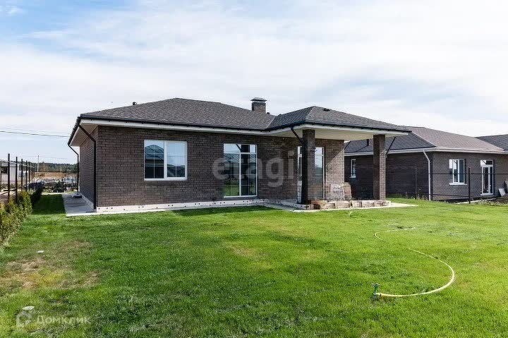 В продаже кирпичный дом 125 кв.м. на участке 10 соток. Конструктив дома: - Фундамент: - монолитная железобетонная плита толщиной 300 млм. 12.5 на 17 м - Стены: - кирпичная кладка в 1,5 кирпича, утеплитель (пенополистирол) 100 млм., технический зазор 20 млм., облицовочный кирпич - Кровля: - мягкая черепица (шингалс), утепление по потолку мин.ватой Идеальная планировка дома. Три просторные изолированные комнаты и большая кухня-гостинная с выходом на террасу, два сан.узла. Установлены большие пластиковые окна (трёхкамерный стеклопакет) из которых открывается прекрасный вид на участок. В зоне кухни-гостиной установлены панорамные окна с дверью. Сам дом находится на участке правильной прямоугольной формы (площадь уточненная, выполнено межевание) с хорошей транспортной доступностью, на машине до гипермаркета Глобус 5 минут езды.