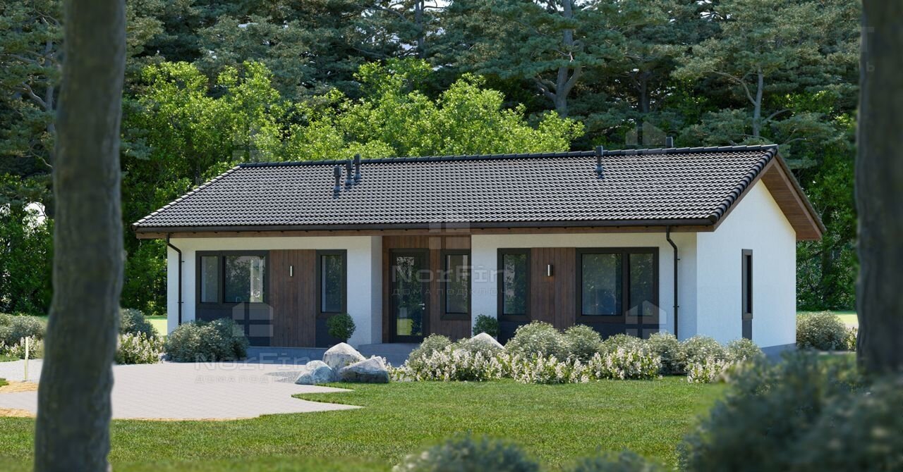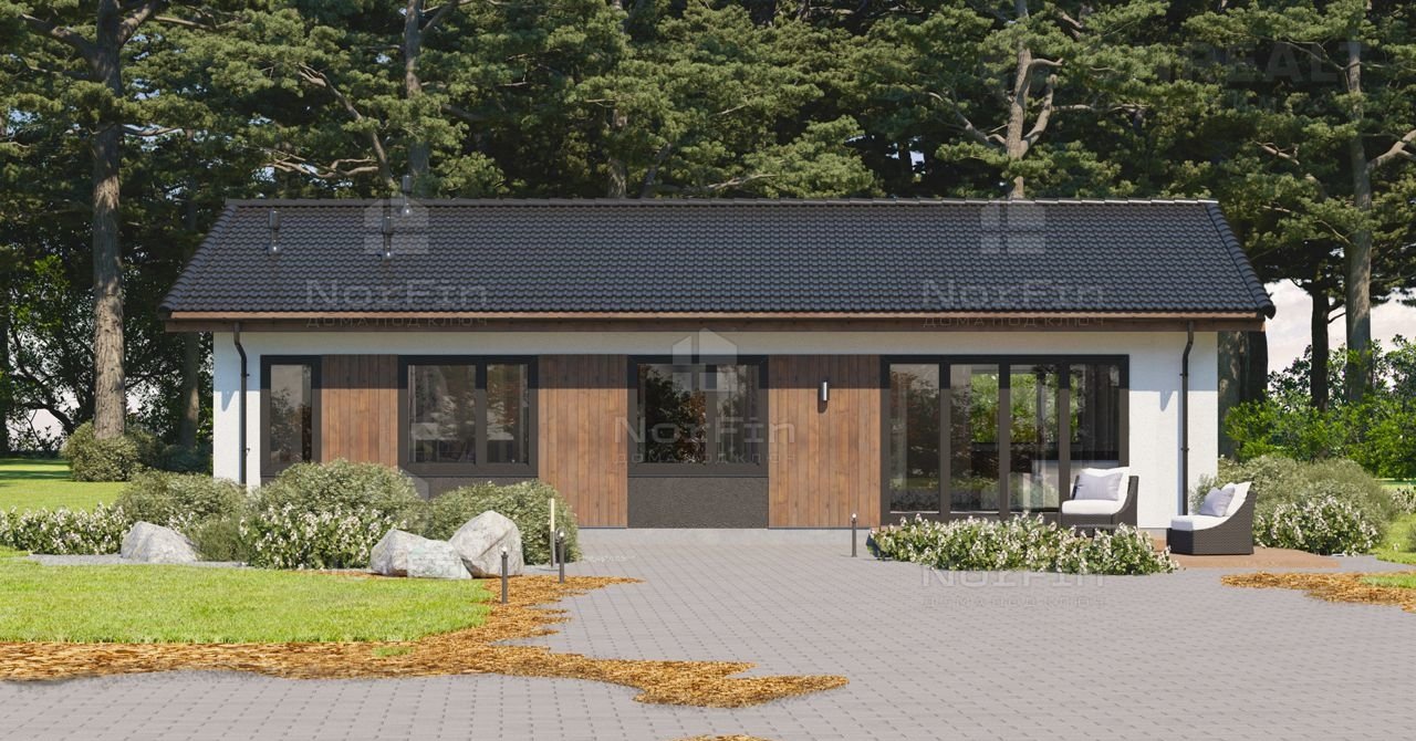 Одноэтажный современный дом 115,6 м2 из премиальных, исключительно природных материалов с панорамным остеклением.