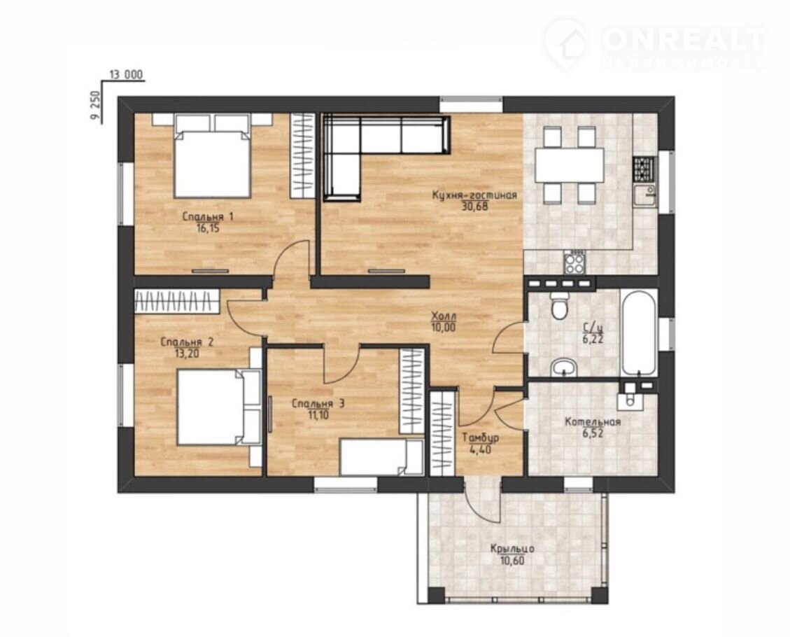 - Просторный потолок 3 метра, создающий ощущение свободного пространства.