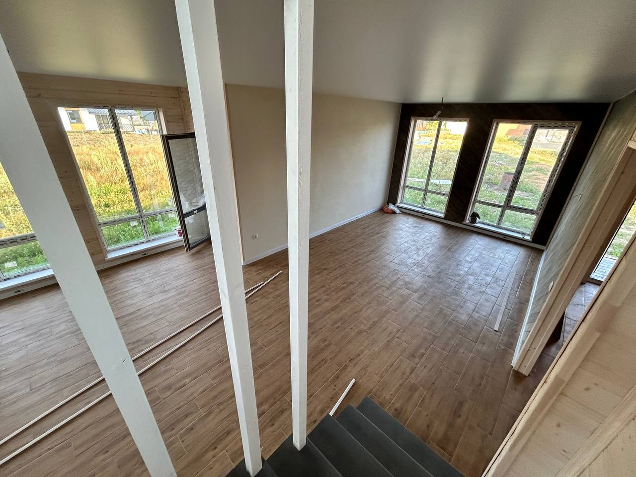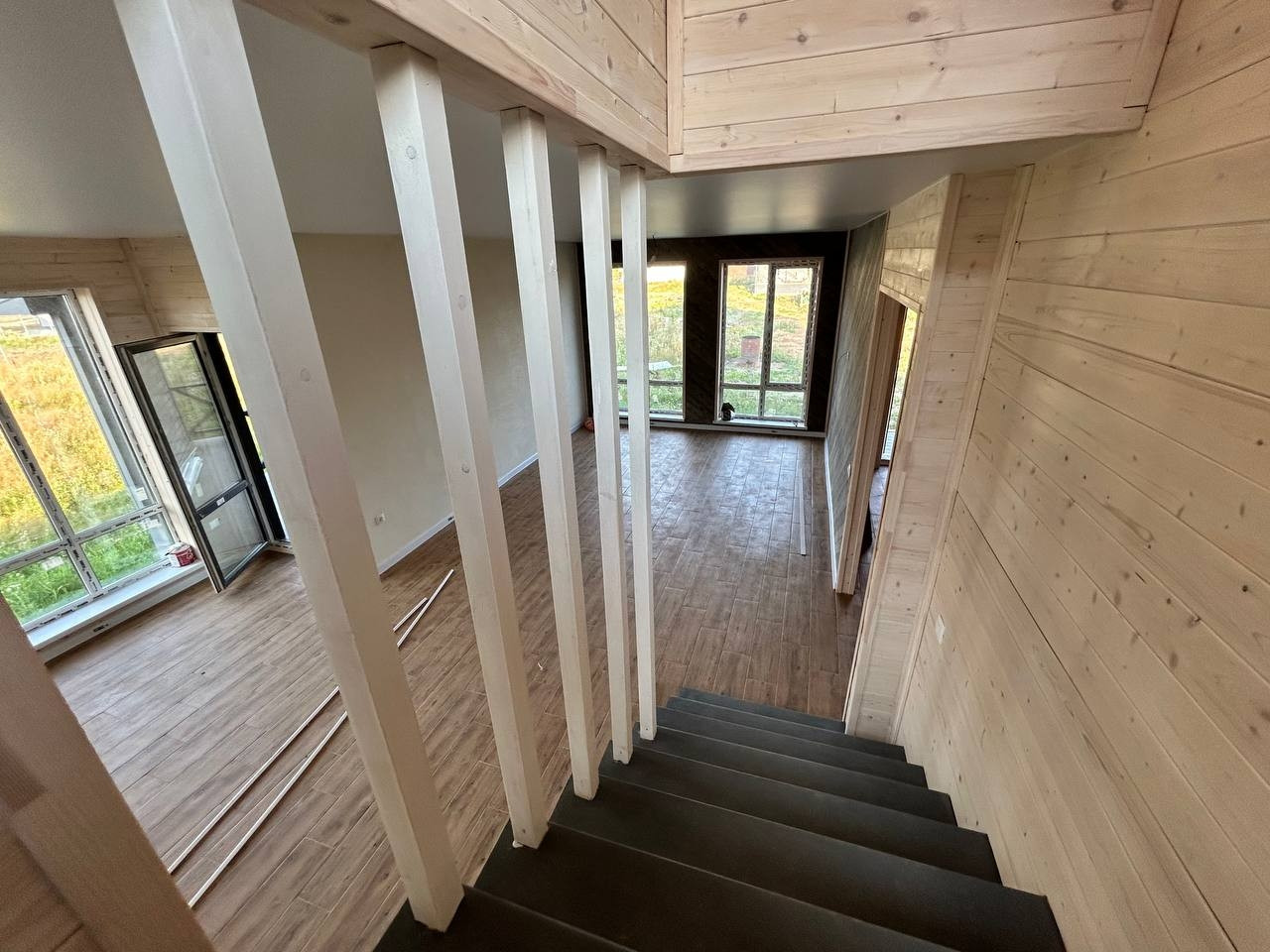 2й этаж: три комнаты, имеют большие панорамные окна, которые обеспечивают больше света, санузел.