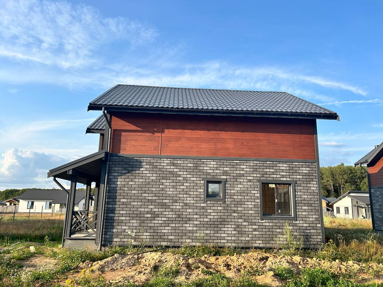 О доме: Фундамент монолитный армированный, стены из газобетонных блоков с утеплителем, крыша-  металлочерепицы с утеплением и установленной водосточной системой.