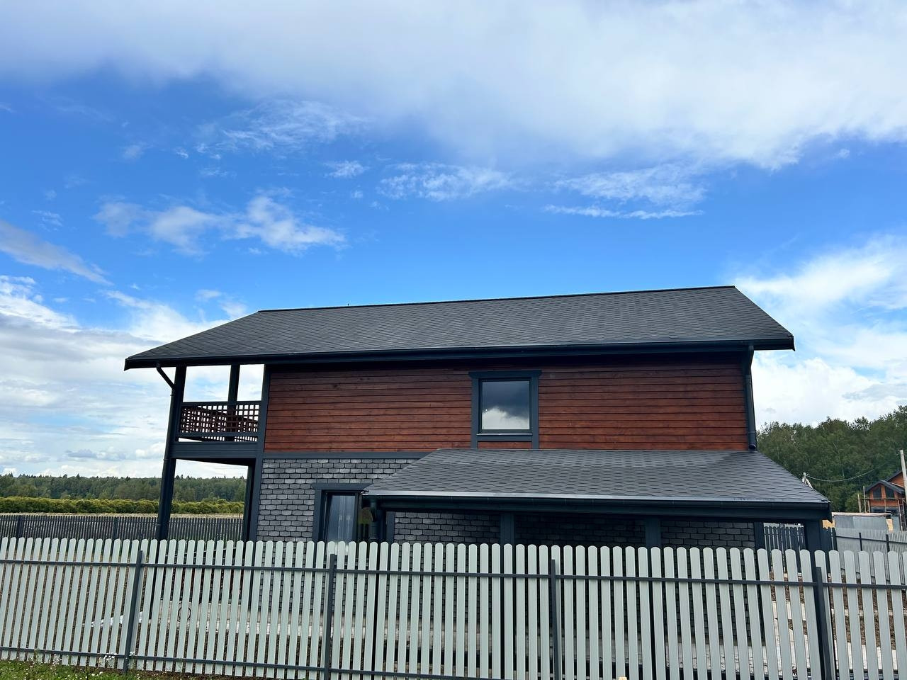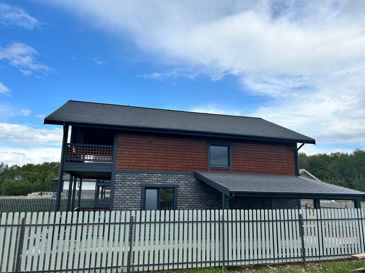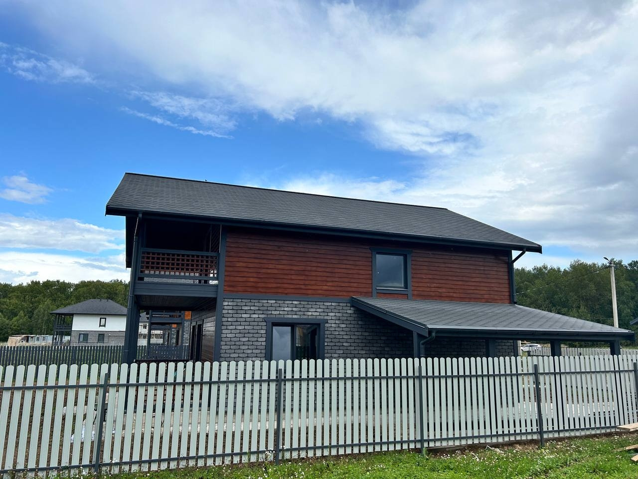 Материал дома: Фундамент - монолитная плита, теплые полы по всему этажу. Материал стен – газоблок+ утепление; Наружная отделка- имитация бруса; Внутренняя отделка: стены – имитация бруса/плитка, полы - плитка/ламинат; натяжные потолки; Кровля - металлочерепица с утеплением; Окна - двухкамерные стеклопакеты с раскладкой; Крыша и фасад - вентилируемые.
