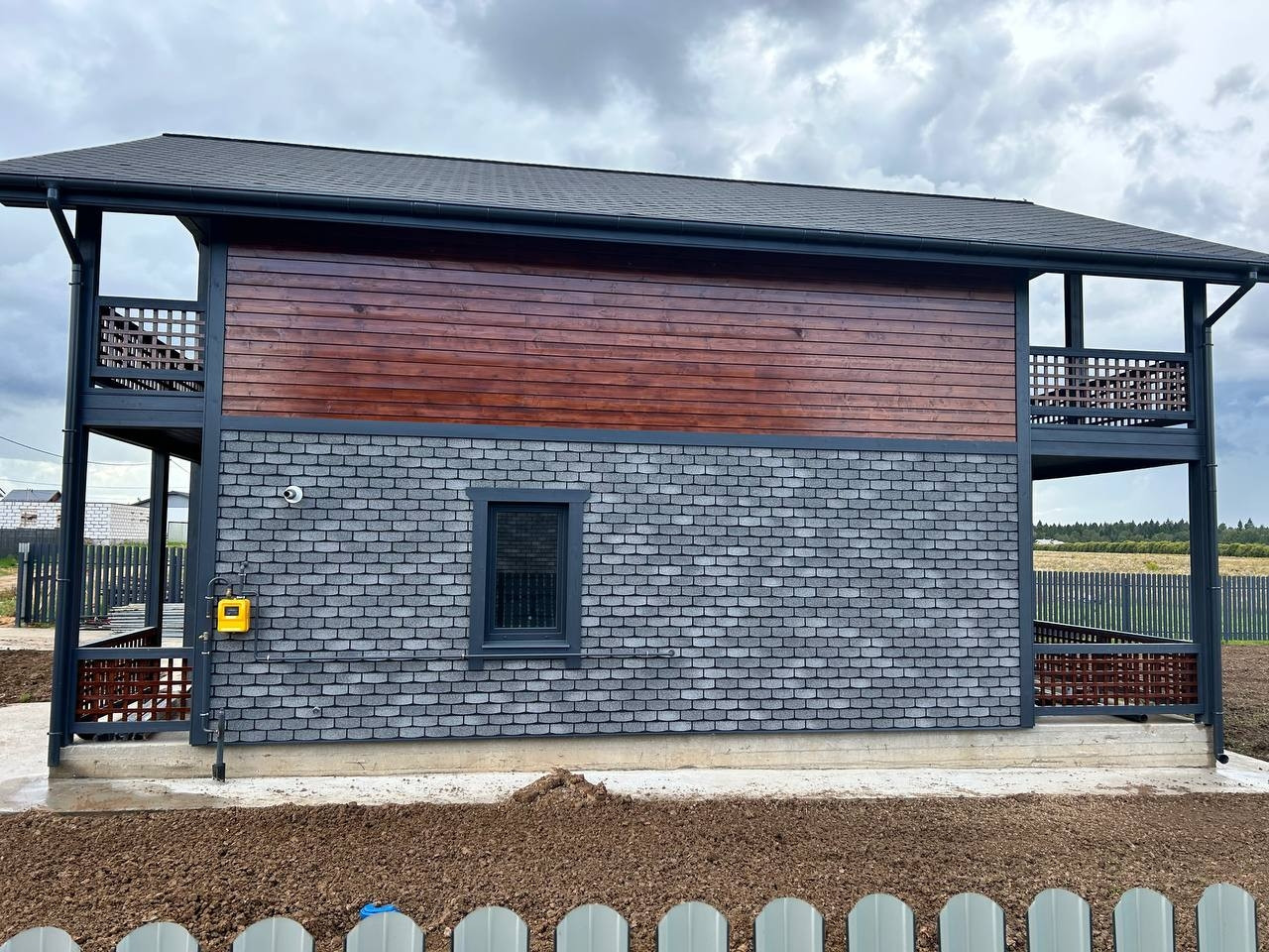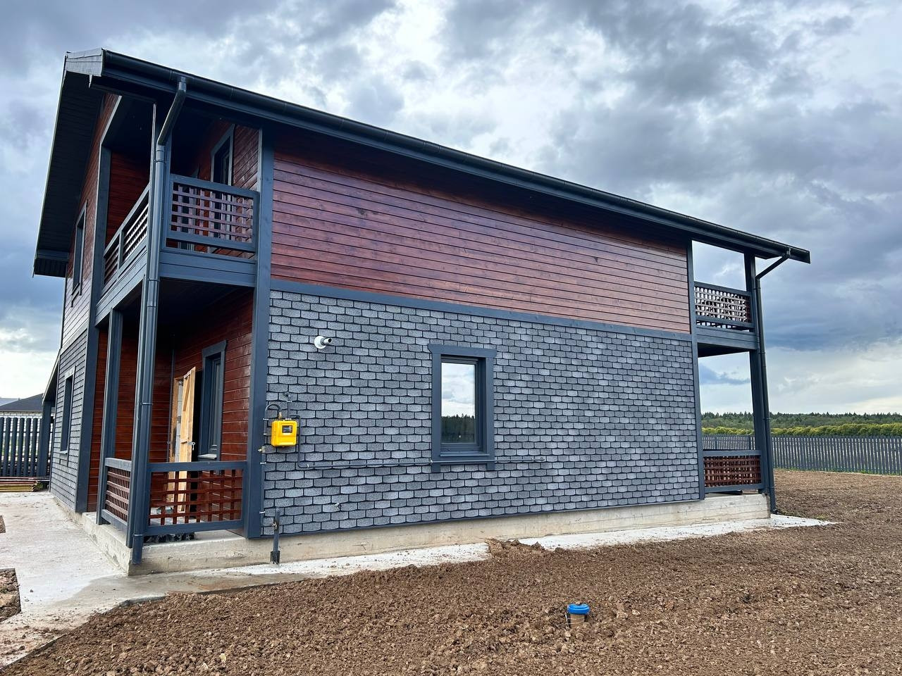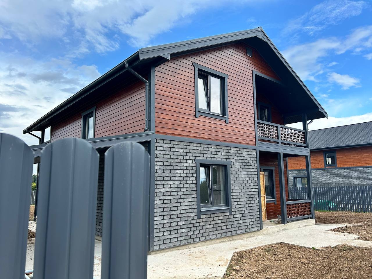 Материал дома: Фундамент - монолитная плита, теплые полы по всему этажу. Материал стен – газоблок+ утепление; Наружная отделка- имитация бруса; Внутренняя отделка: стены – имитация бруса/плитка, полы - плитка/ламинат; натяжные потолки; Кровля - металлочерепица с утеплением; Окна - двухкамерные стеклопакеты с раскладкой; Крыша и фасад - вентилируемые.