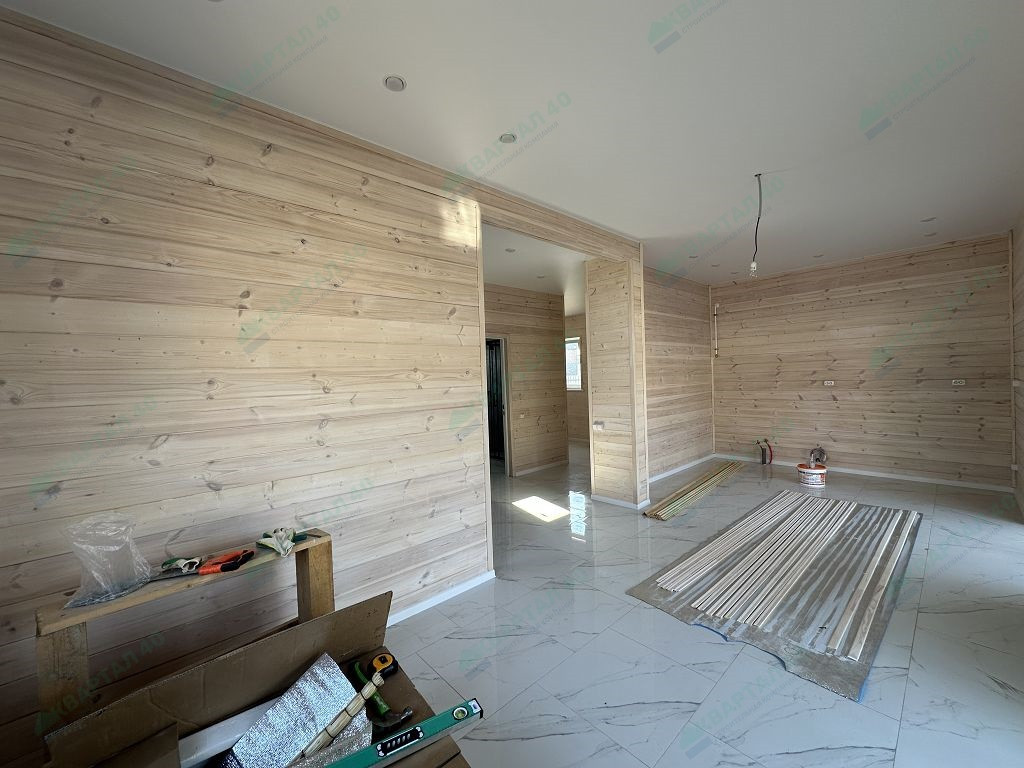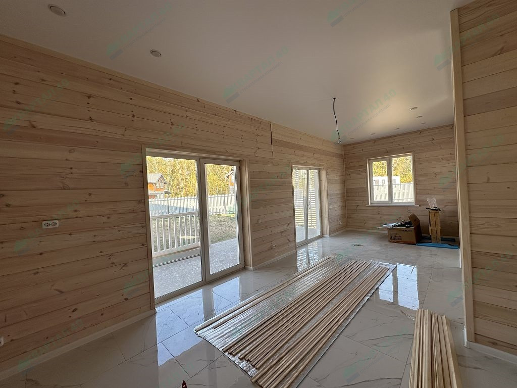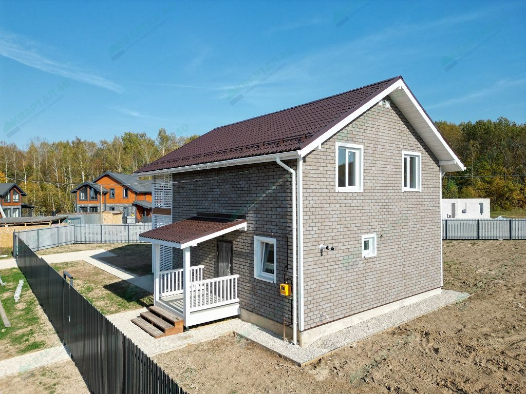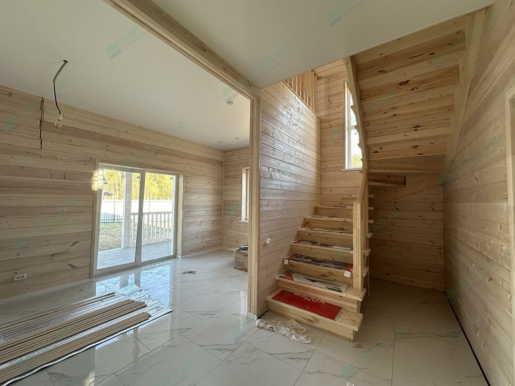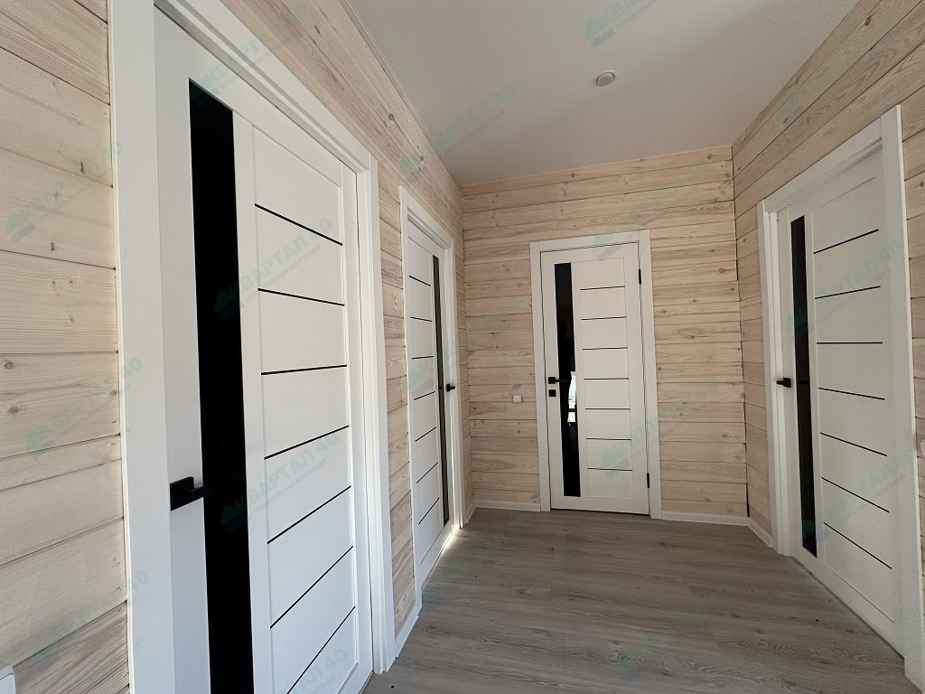 Материал стен – газоблоки с утеплением, отделка наружная: фасадная плитка Hauberk / имитация бруса, внутренняя – имитация бруса / плитка;