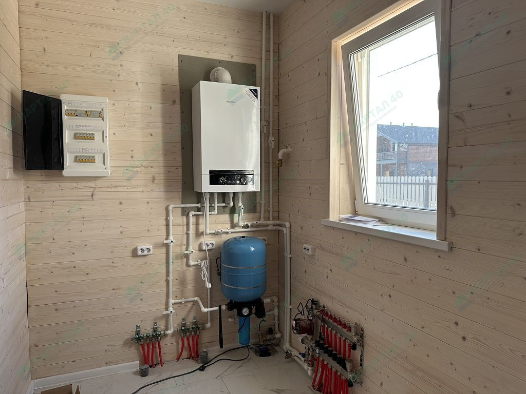Отопление – двухконтурный газовый котел (теплые водяные полы по первому этажу + радиаторы);