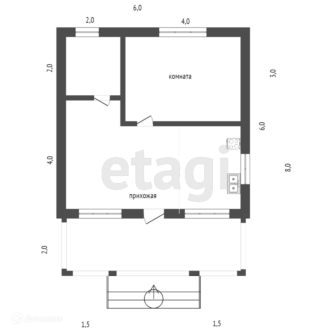 1-этажный дом, 40 м2, на продажу в деревне Наримановой, Центральная улица, 5