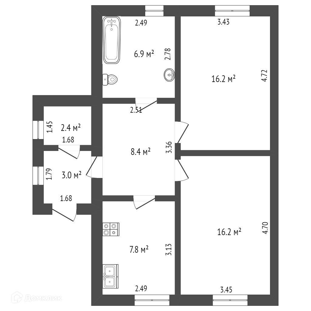 Общая площадь 60 м2