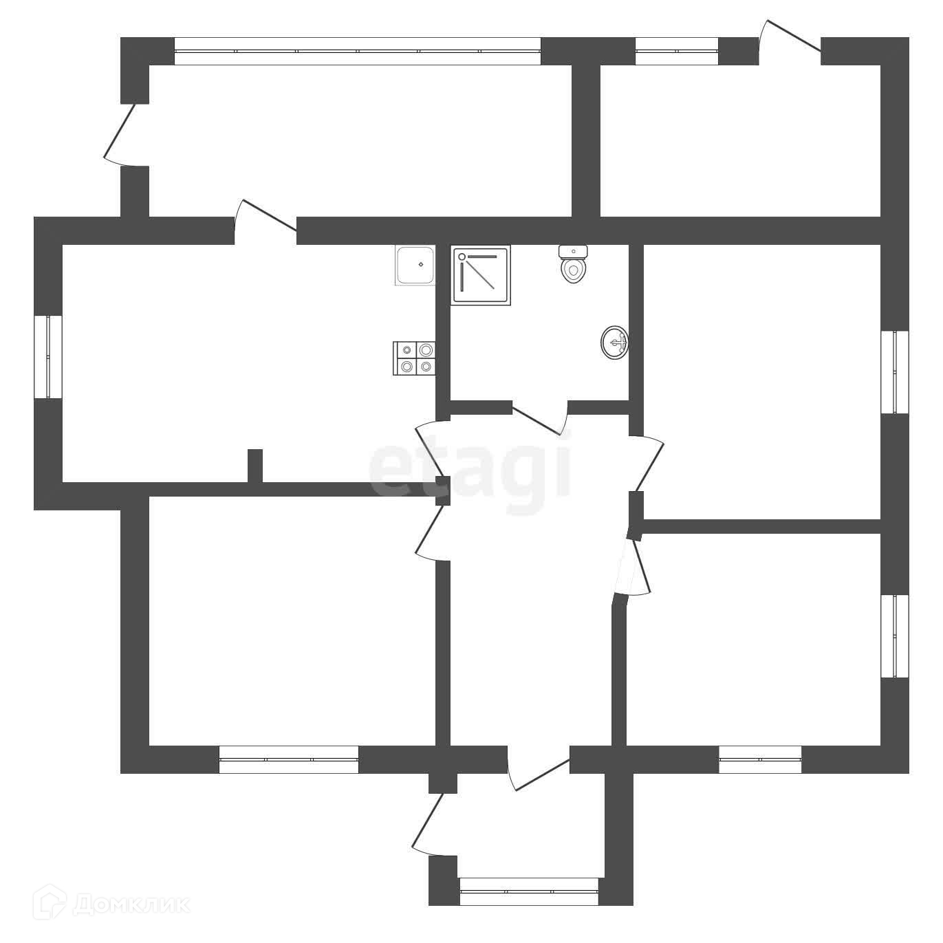 В доме 3 большие комнаты, кухня, веранда.