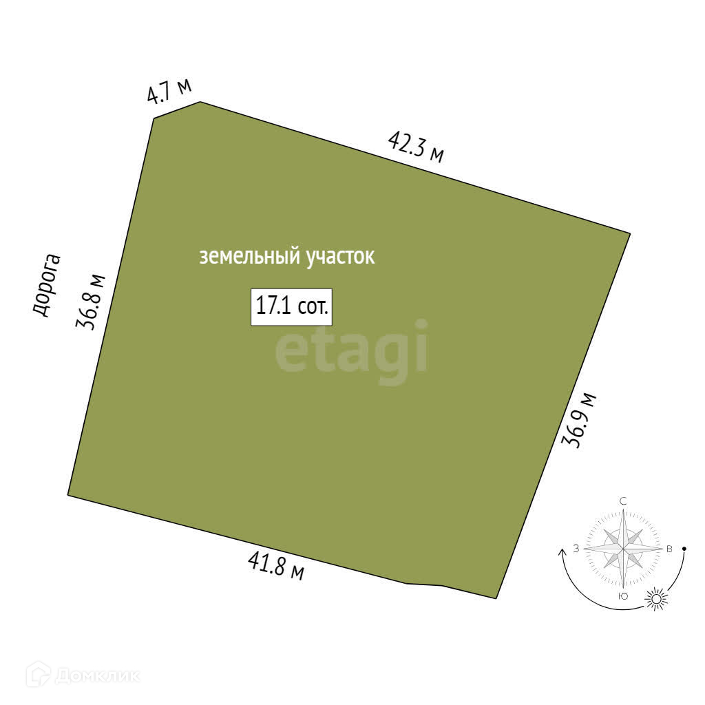 Площадь участка 17.1 сот.