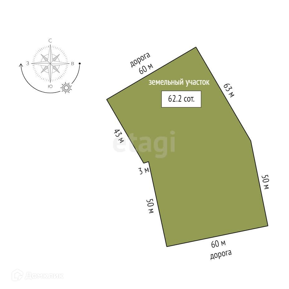 Площадь участка 62.2 сот.