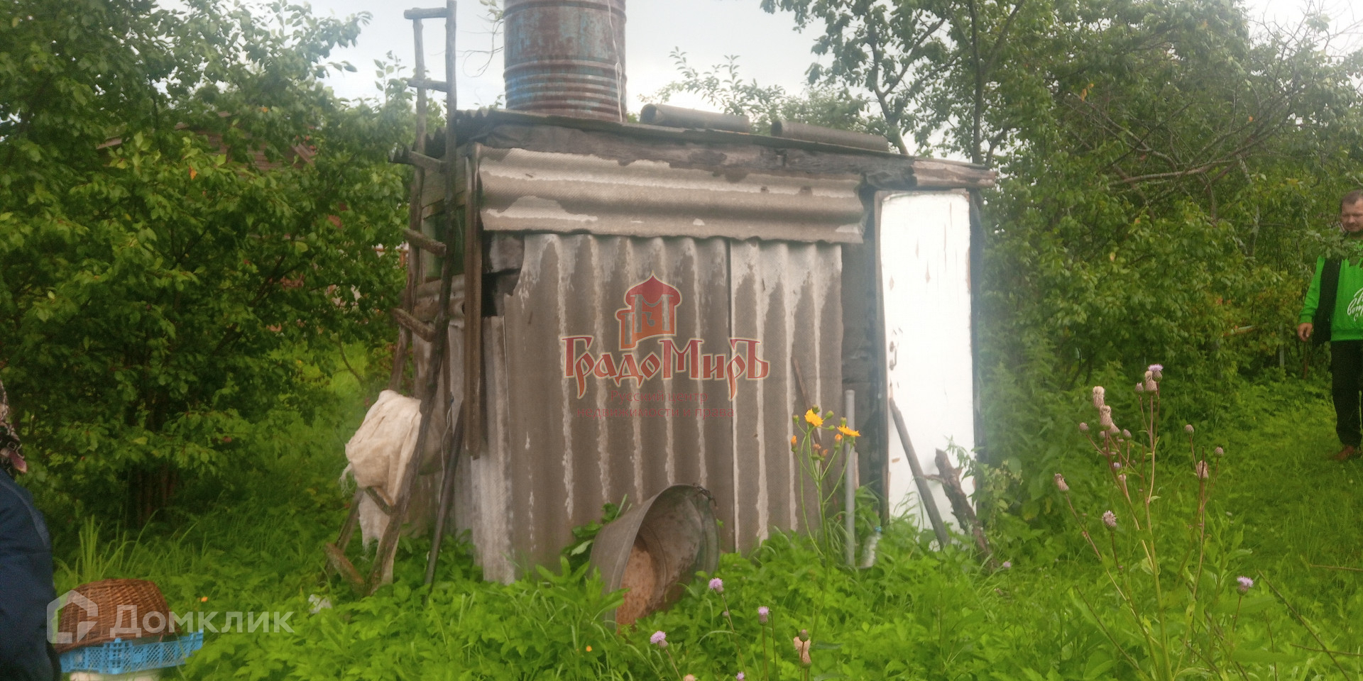 На участке есть кирпичный гараж с ямой, летний душ, сарай с погребом.