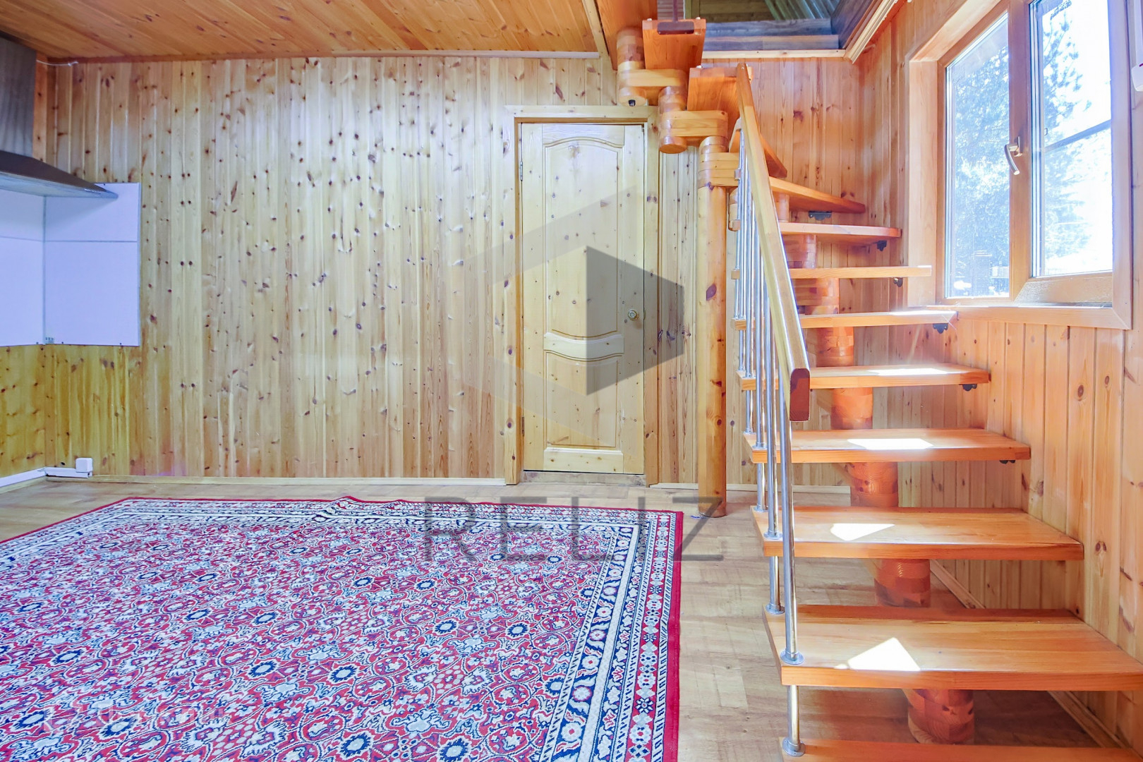 Обшит имитацией бруса;