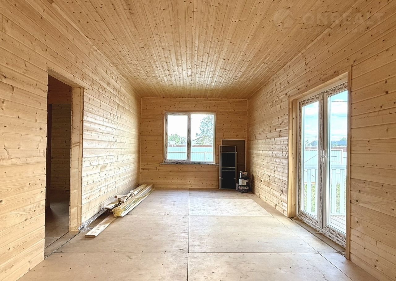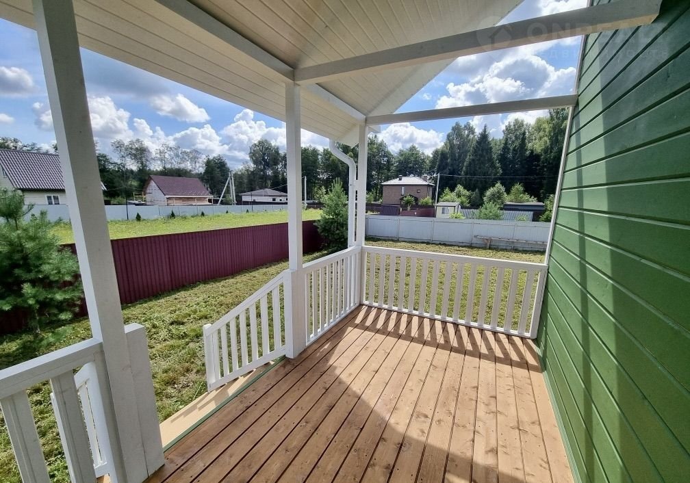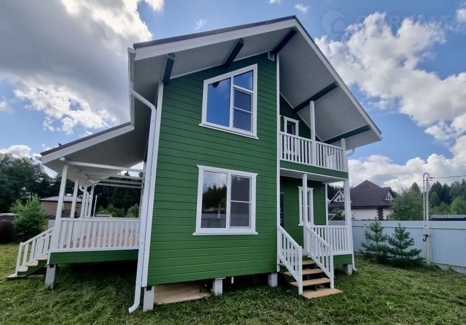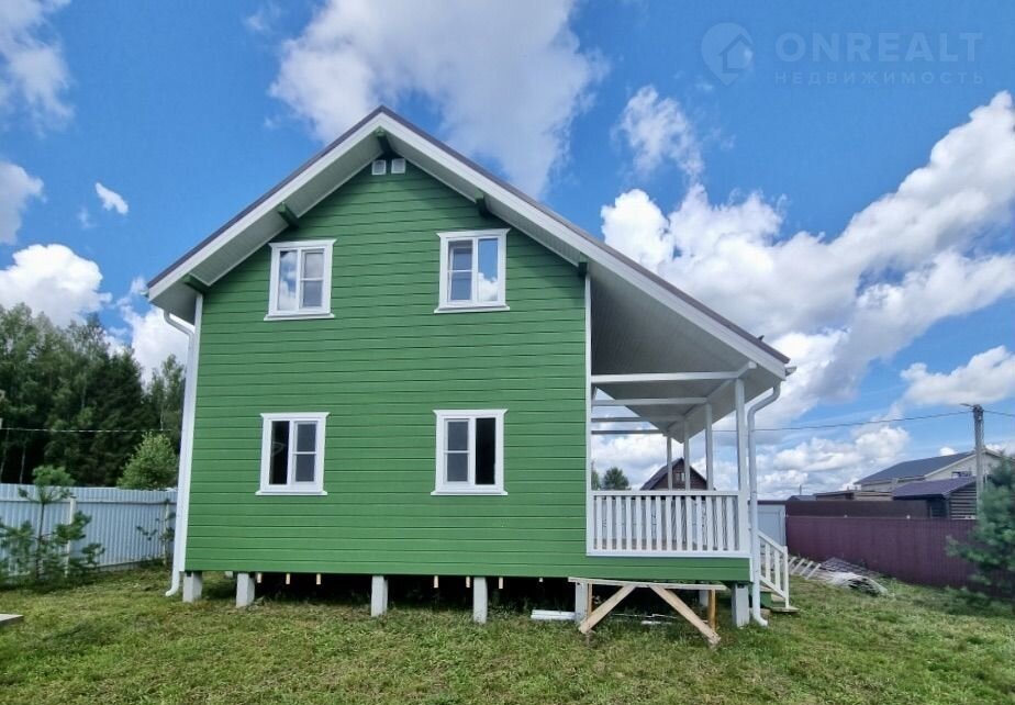 Дом построен по каркасной технологии. Выполнена предварительная геология участка. Фундамент — железобетонные сваи 200 мм. Утепление стен — 150 мм, крыши и пола — 200 мм. Наружная отделка выполнена имитацией бруса 200 мм, внутренняя — имитацией бруса 150 мм и вагонкой. Межкомнатные и межэтажные перекрытия утеплены. Установлены дополнительные лаги в санузлах для усиления полов. В доме выполнен черновой пол — фанера 20 мм.