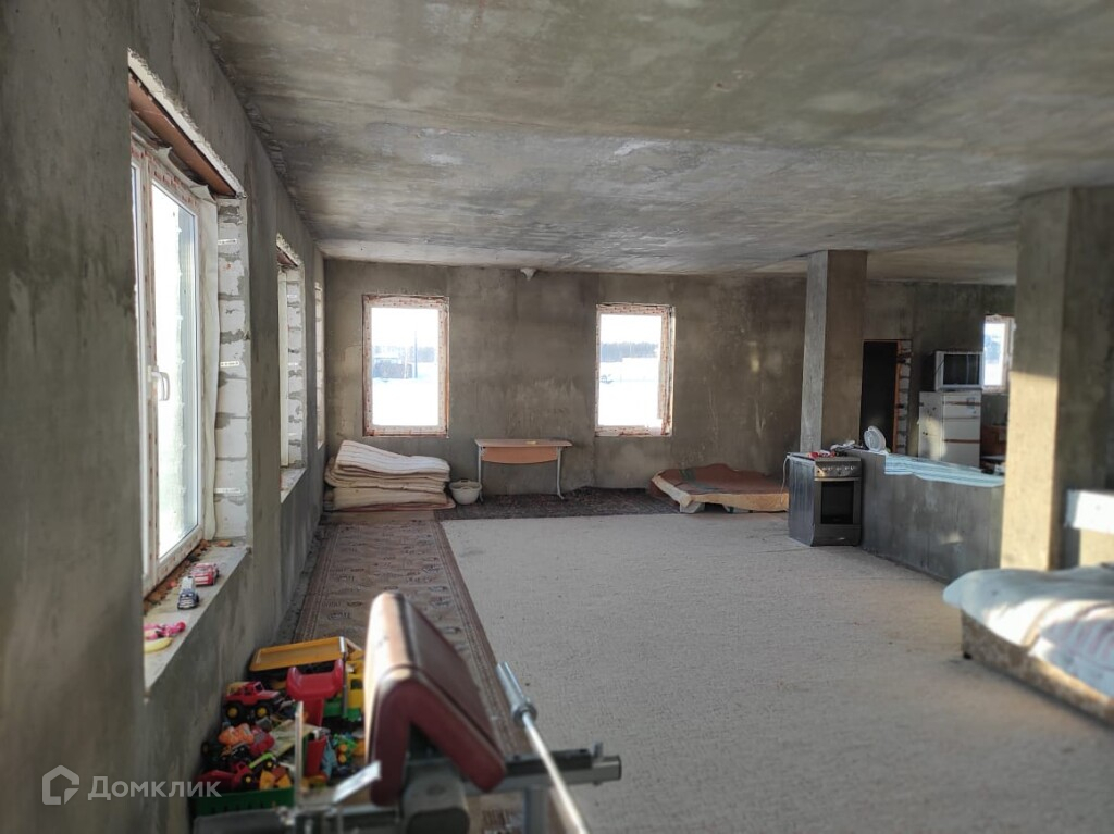 На 1 этаже, гостиная 55 м² , кухня-столовая 20 м², коридор, прихожая ≈10м², санузел ≈8 м² . Дом полностью утеплён, кровля металлочерепица, произведена штукатурка внутри.