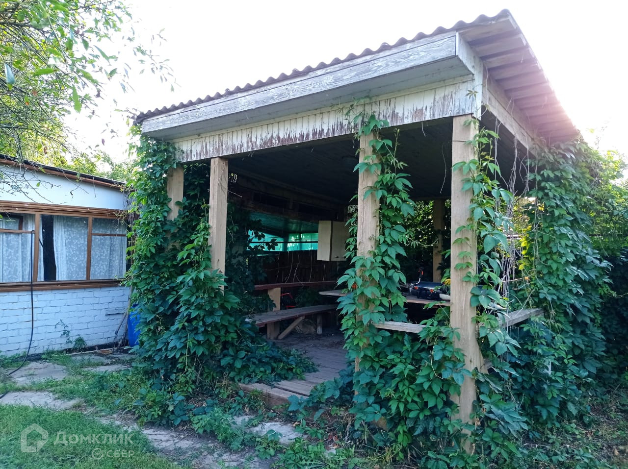 Крыша покрыта шифером.