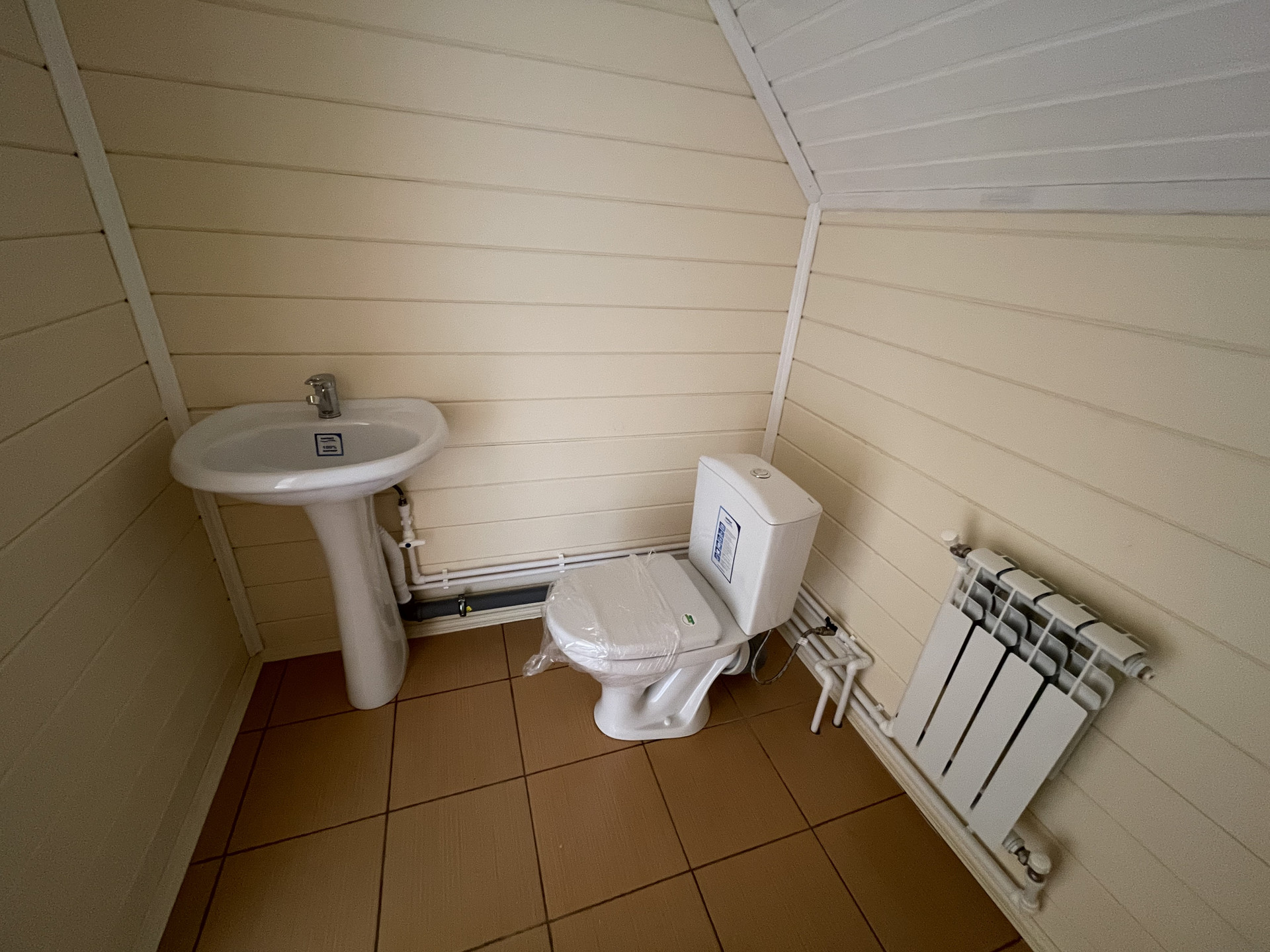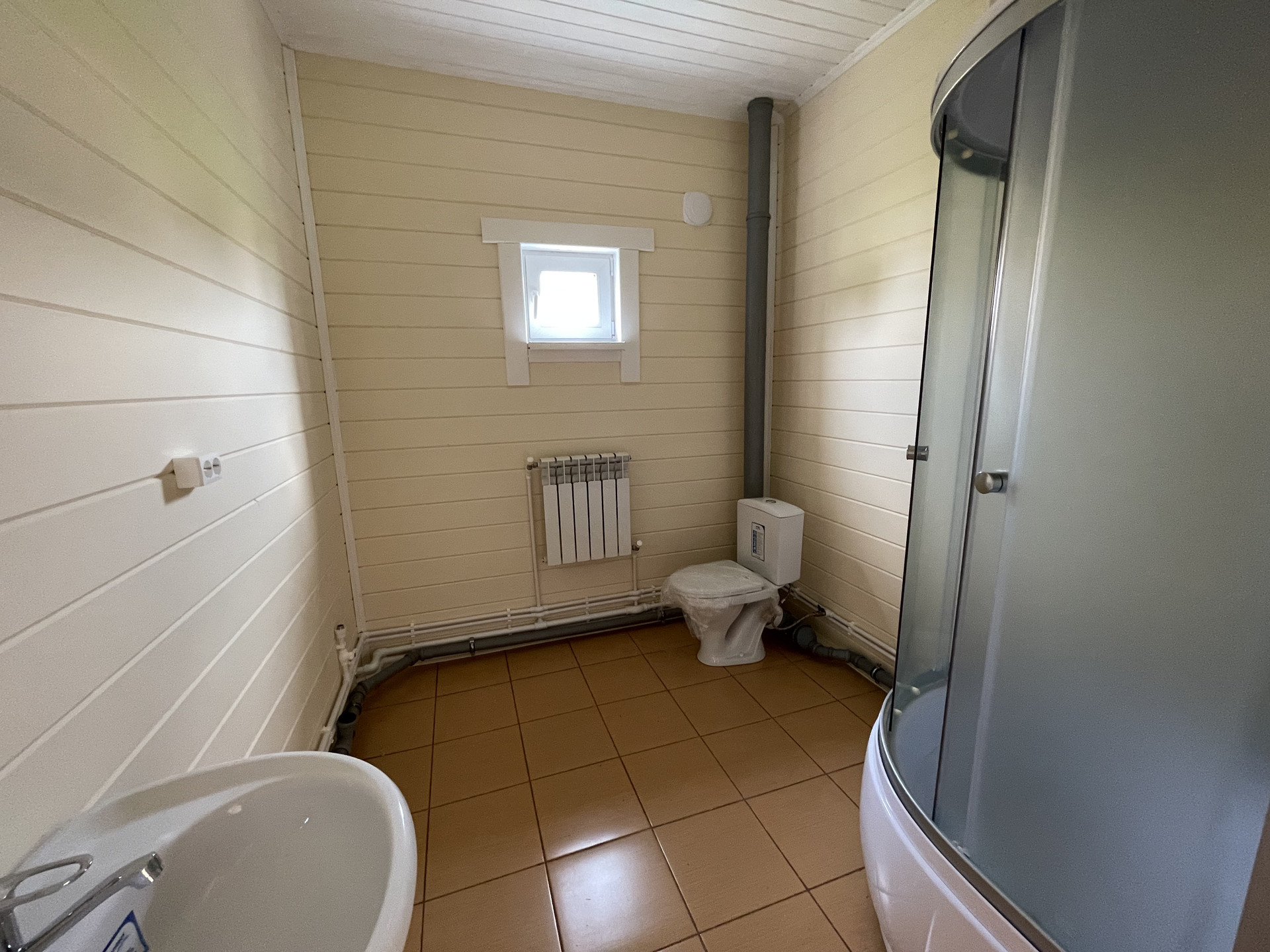 - Вода скважина на участке, водонагреватель, вода проведена в кухню и санузлы. В санузлах - душевая кабина, раковины, унитазы, сантехника.