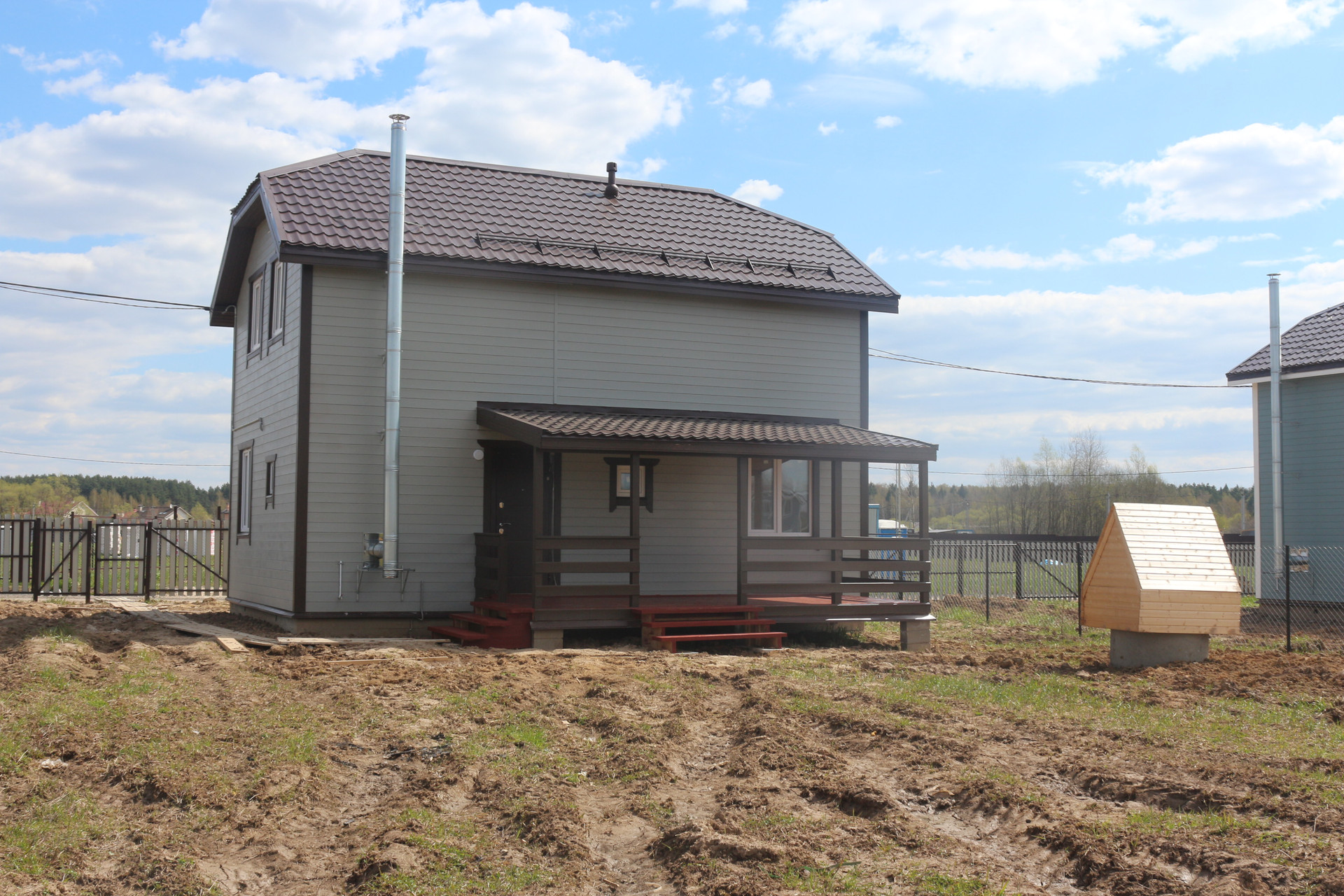 Новый дом площадью 101 кв. м на участке 6 соток в поселке Петровский Луг. ИЖС, прописка. Дом для постоянного проживания, коммуникации, отделка. До ж/д станции - 15 минут, до МКАД - 65 км. Инфраструктура, лес, река и карьер. Продажа от застройщика.