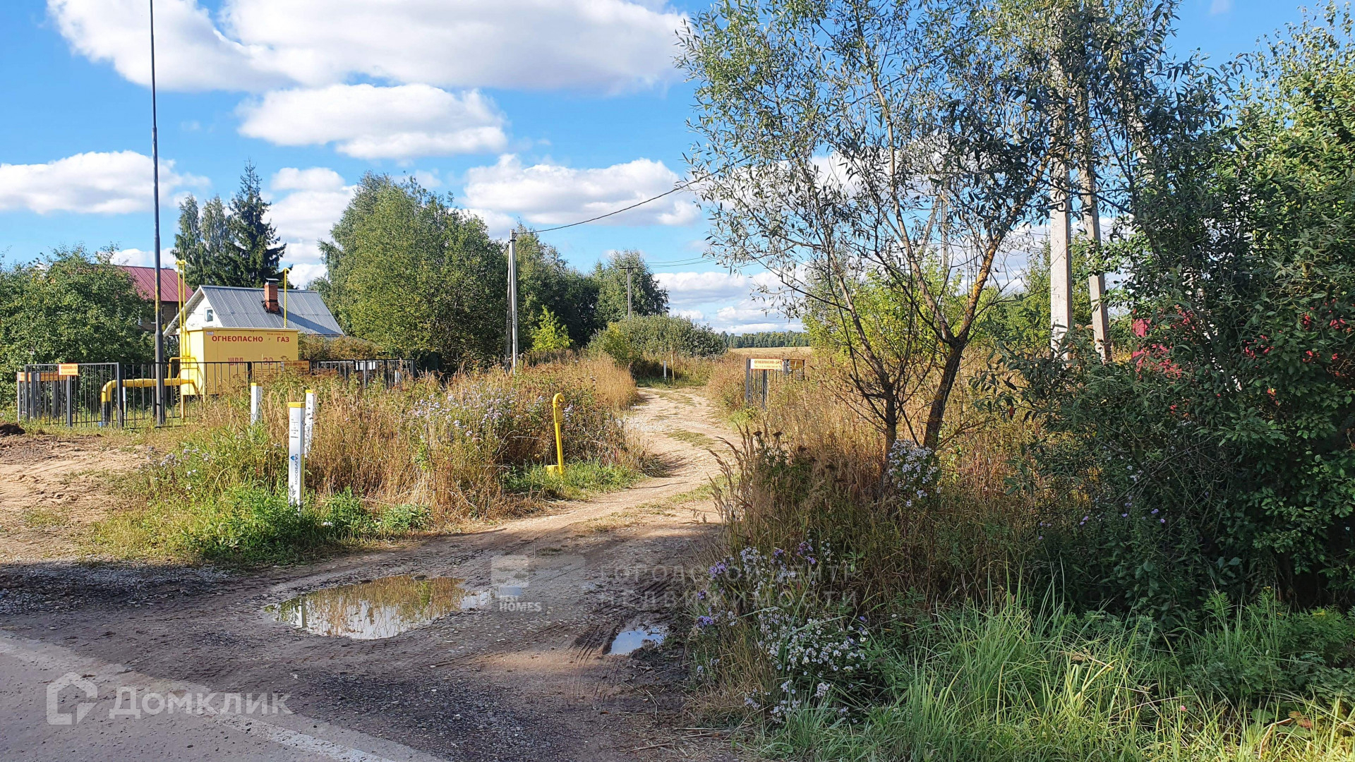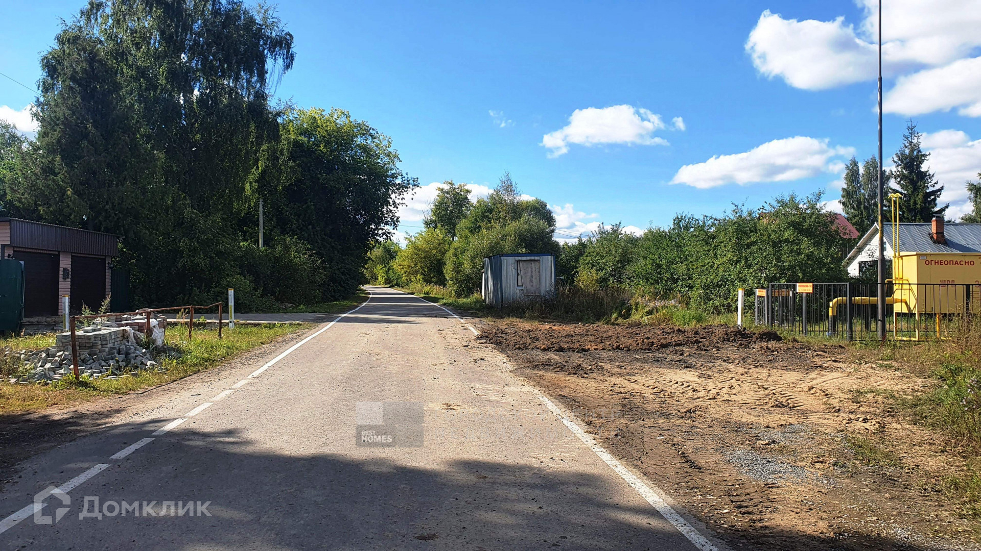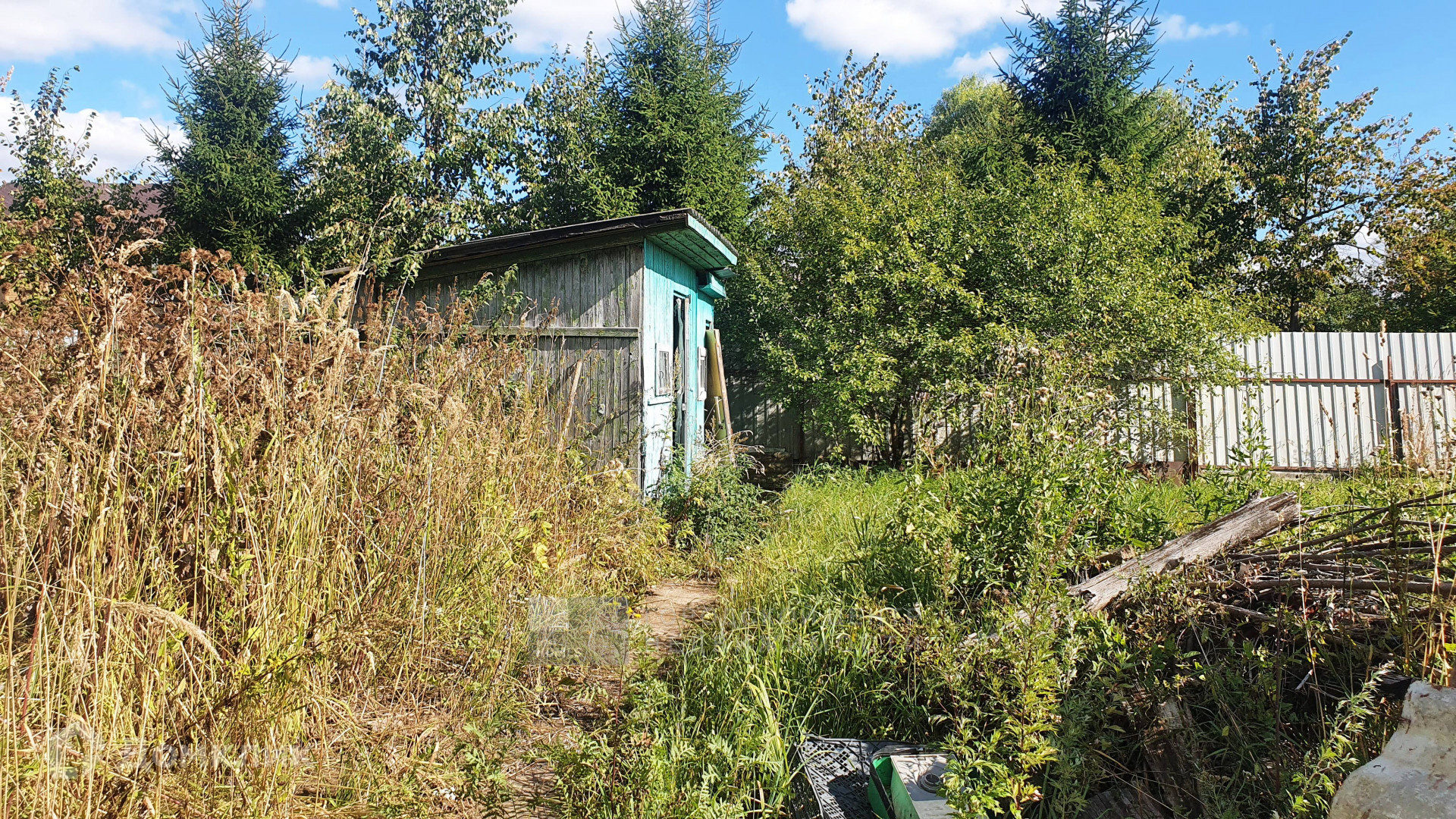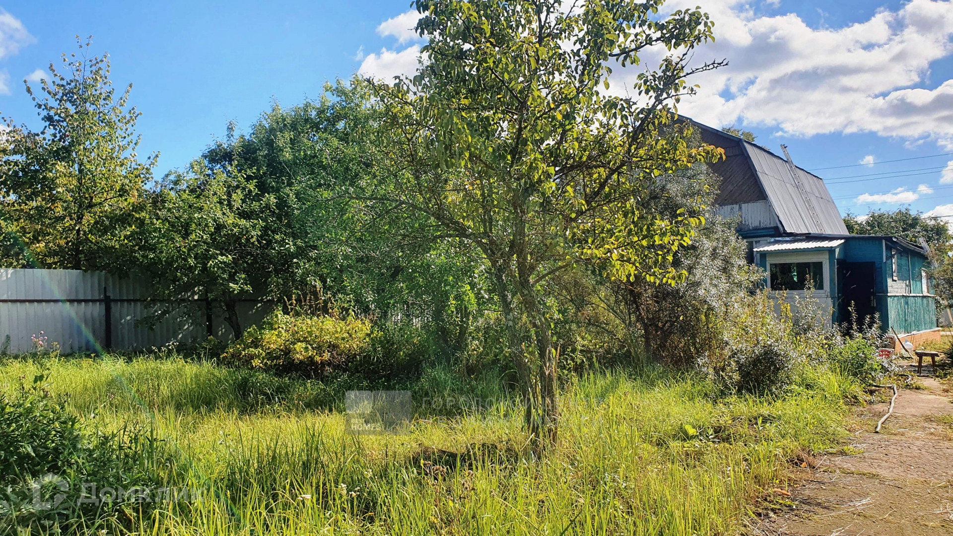 Участок ЛПХ, сухой, освещенный, ровный, прямоугольный, огорожен забором из профлиста по фасаду и сетки-рабицы по периметру.