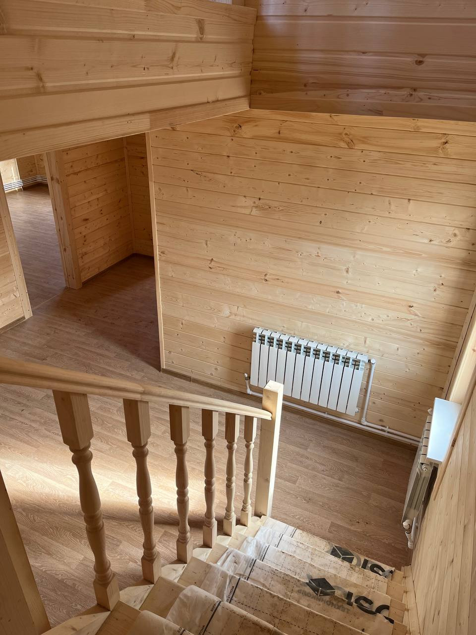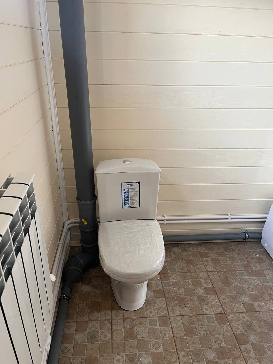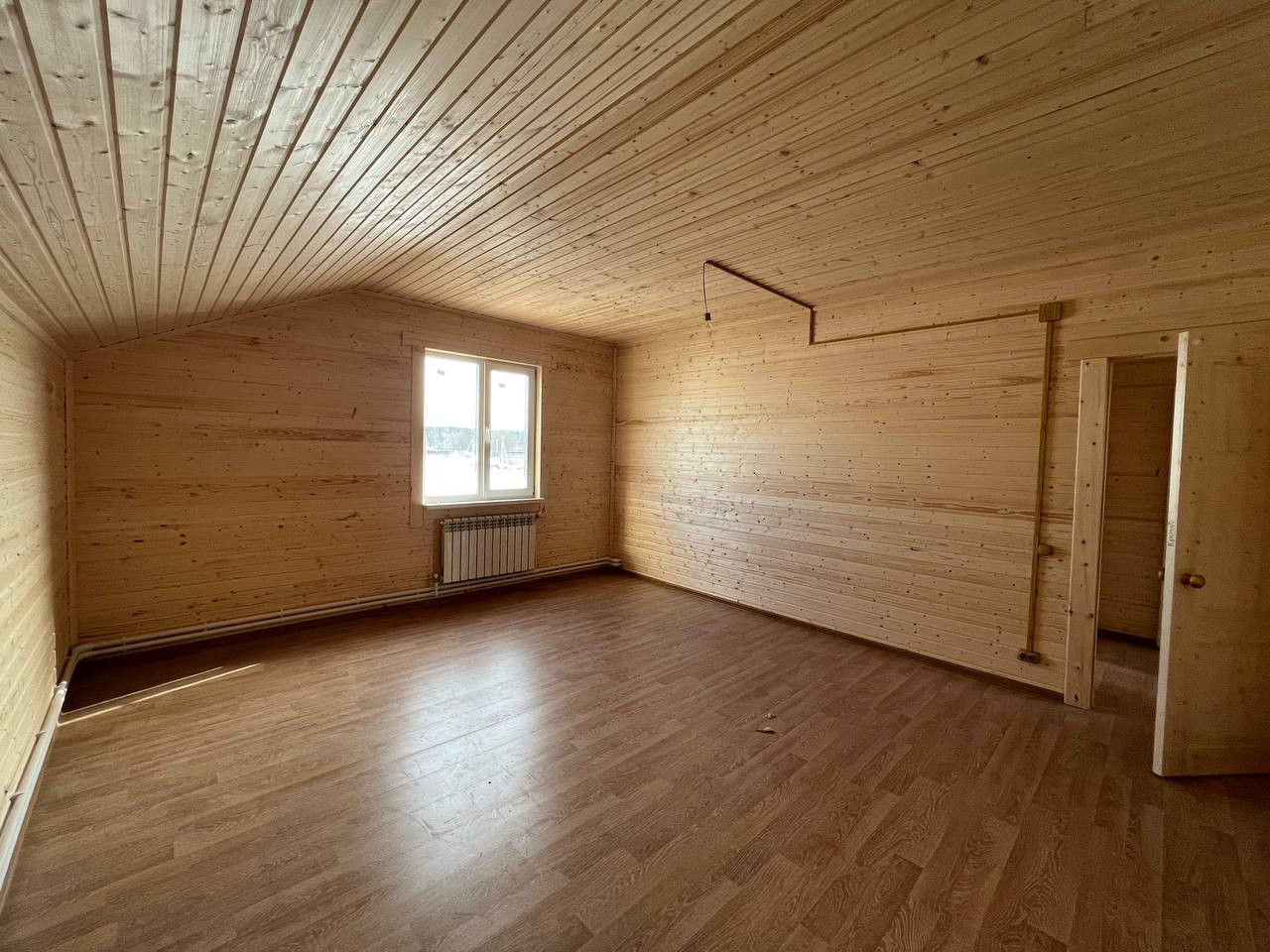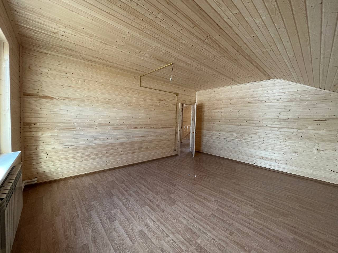 Все коммуникации проведены. Выполнена внутренняя отделка. Установлена металлическая входная дверь, деревянные межкомнатные двери, пластиковые окна, стены внутри обшиты вагонкой. Вода проведена от скважины в кухню и санузлы. В санузлах есть душевая кабина, раковина и туалет, а также бойлер для горячей воды. Канализация на базе септика Экопан. Электричество разведено: во всех комнатах есть свет, розетки и выключатели. Мощность - 15 кВт. Для отопления используется твердотопливный котел, который работает на угле и дровах, а также от электричества. Во всех помещениях установлены радиаторы.