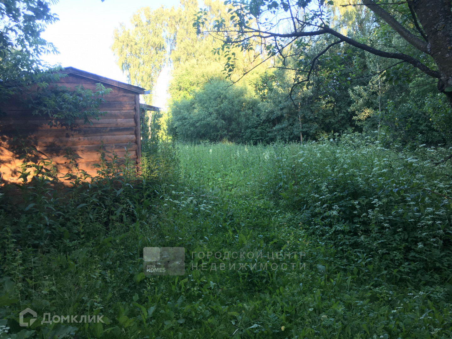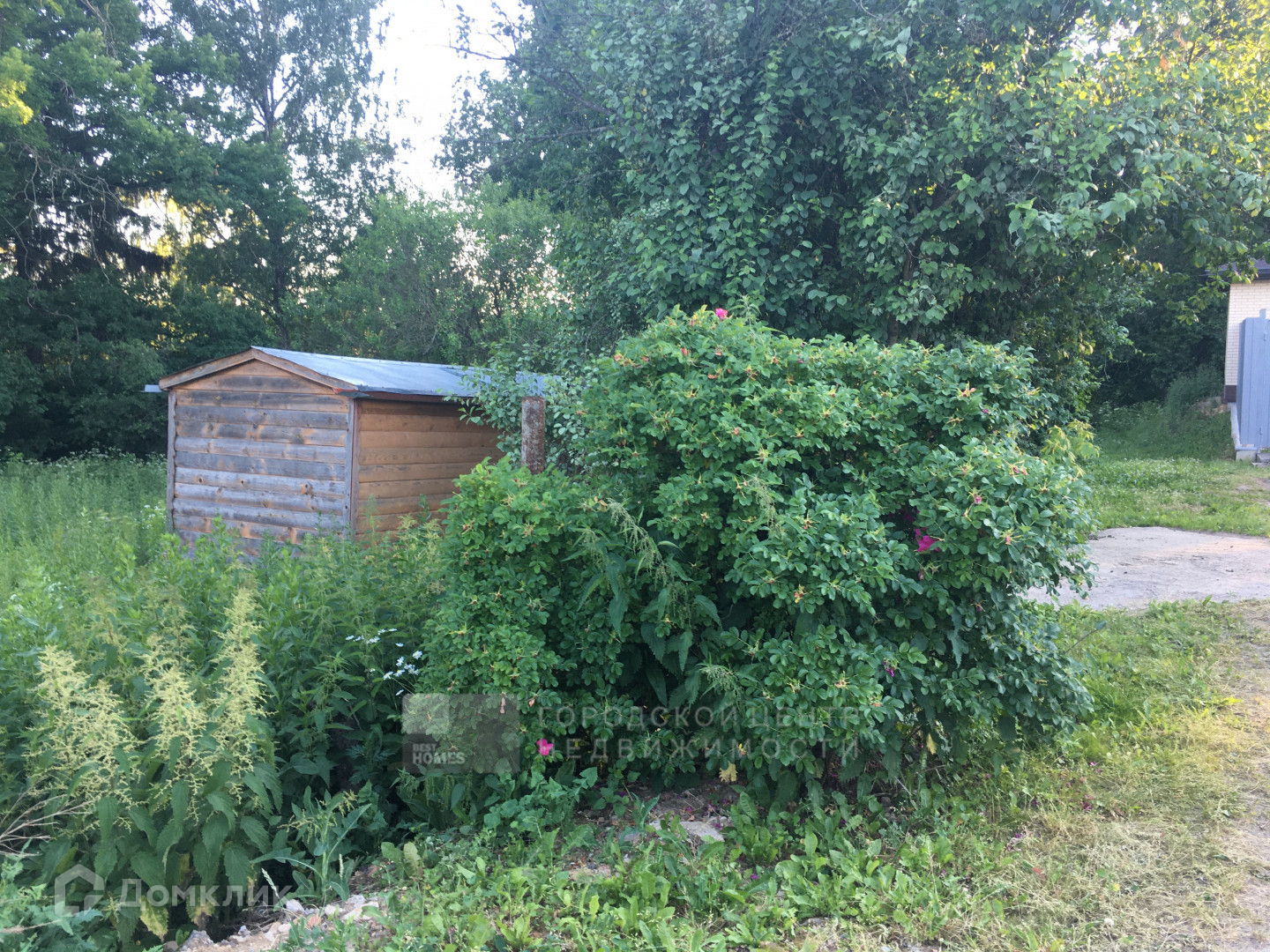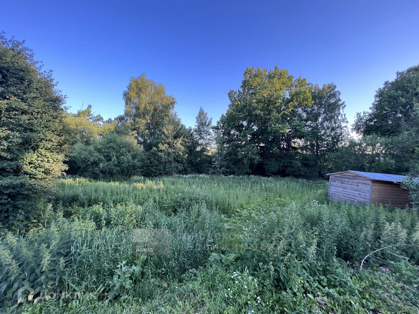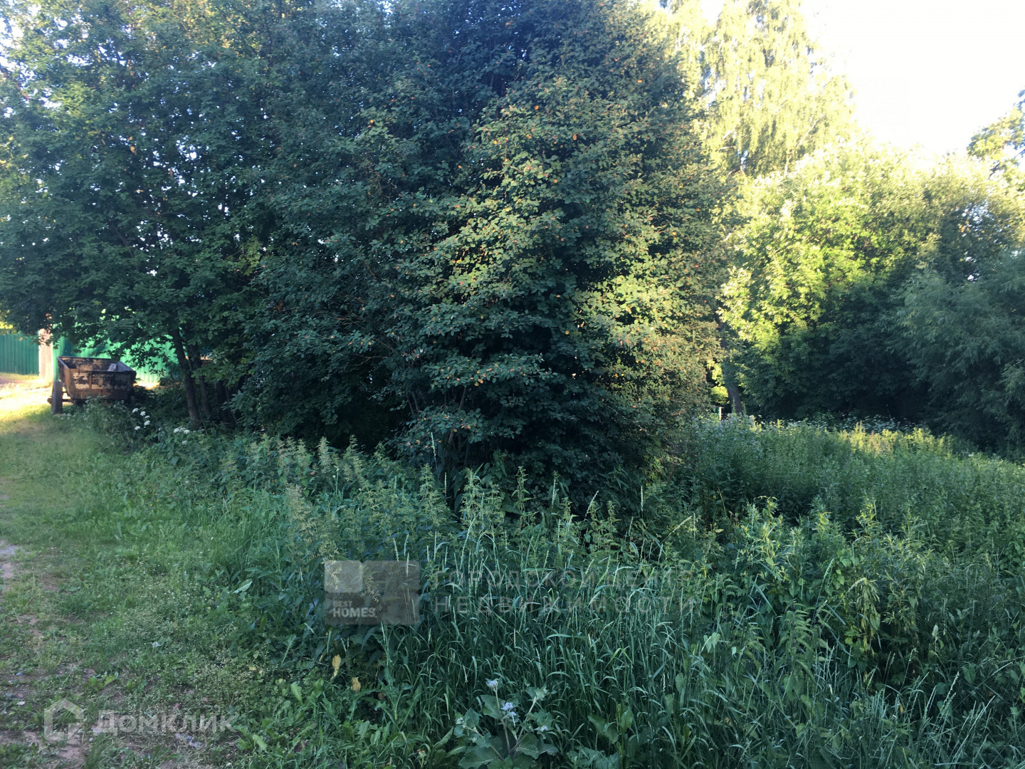 Участок окружен высокими лесными деревьями, утопает в зелени. Здесь есть бытовка для размещения рабочих.
