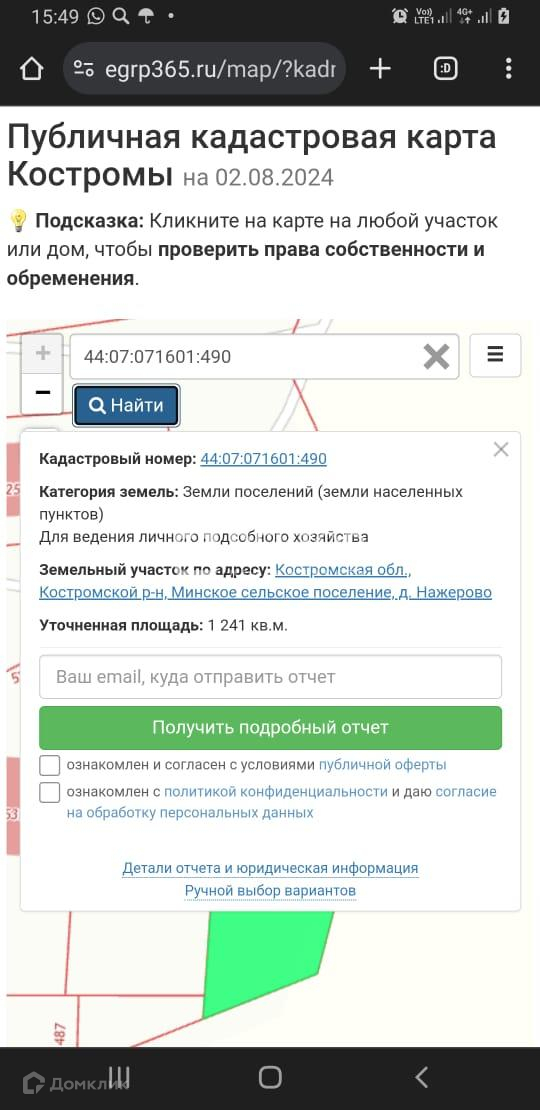 Межевание сделано, кадастровый номер 44:07:071601:490.