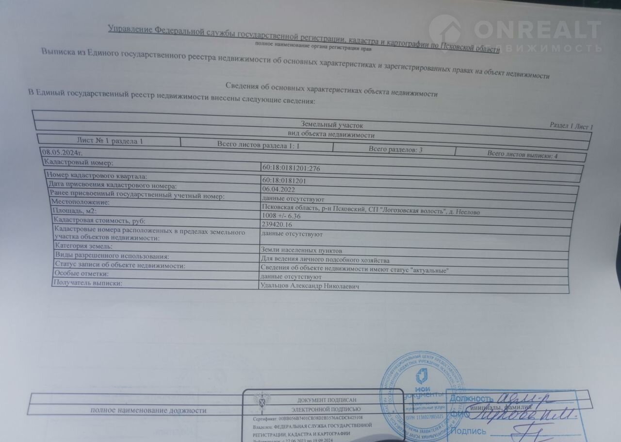 Площадь участка 1008 сот.