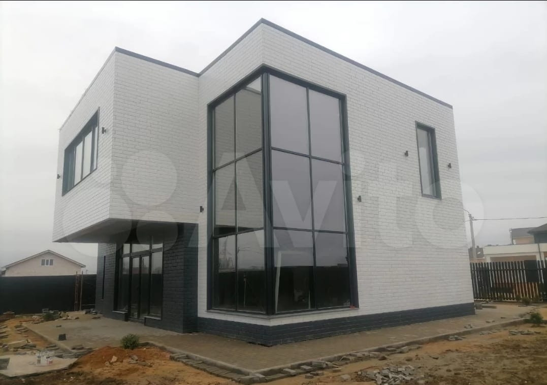 Современный дом с панорамными окнами.  Штукатурка стен по маякам, планировка участка, газон, брусчатка, забор по периметру, туи вдоль забора. Дом находится на территории КП « Артек 2»,  газ по границе, электричество 15 кв., в шаговой доступности муниципальный детский сад, автобусная остановка,  на территорию заезжает школьный автобус,  на территории свой водоем, поселок с выходом в лес, в нескольких минутах езды:  магазины крупных торговых сетей, частный детский сад, храм.