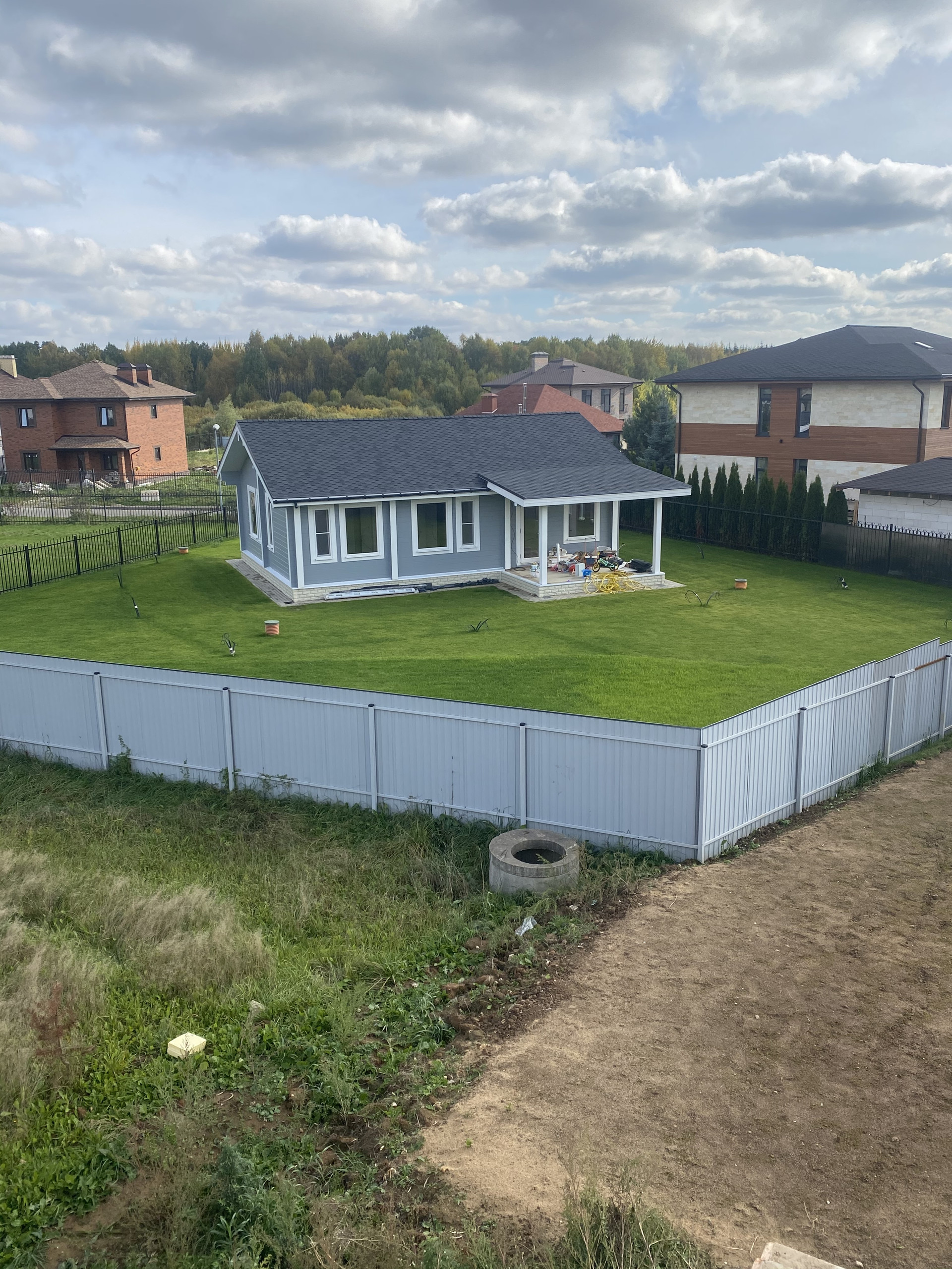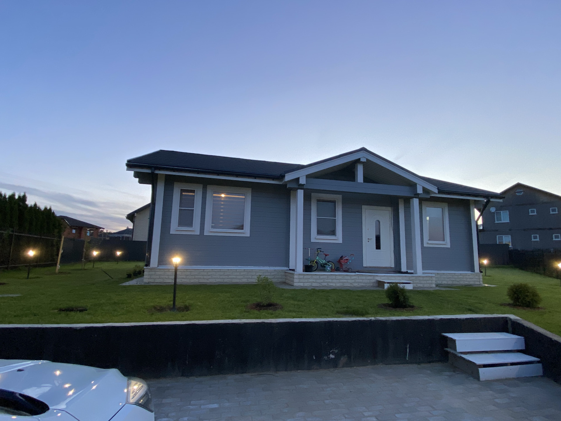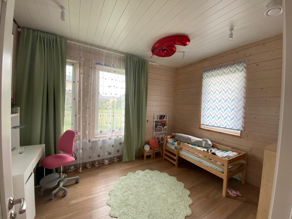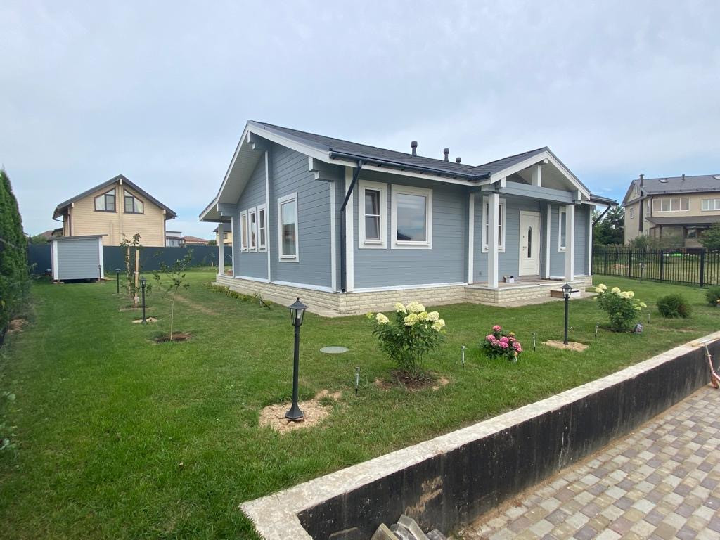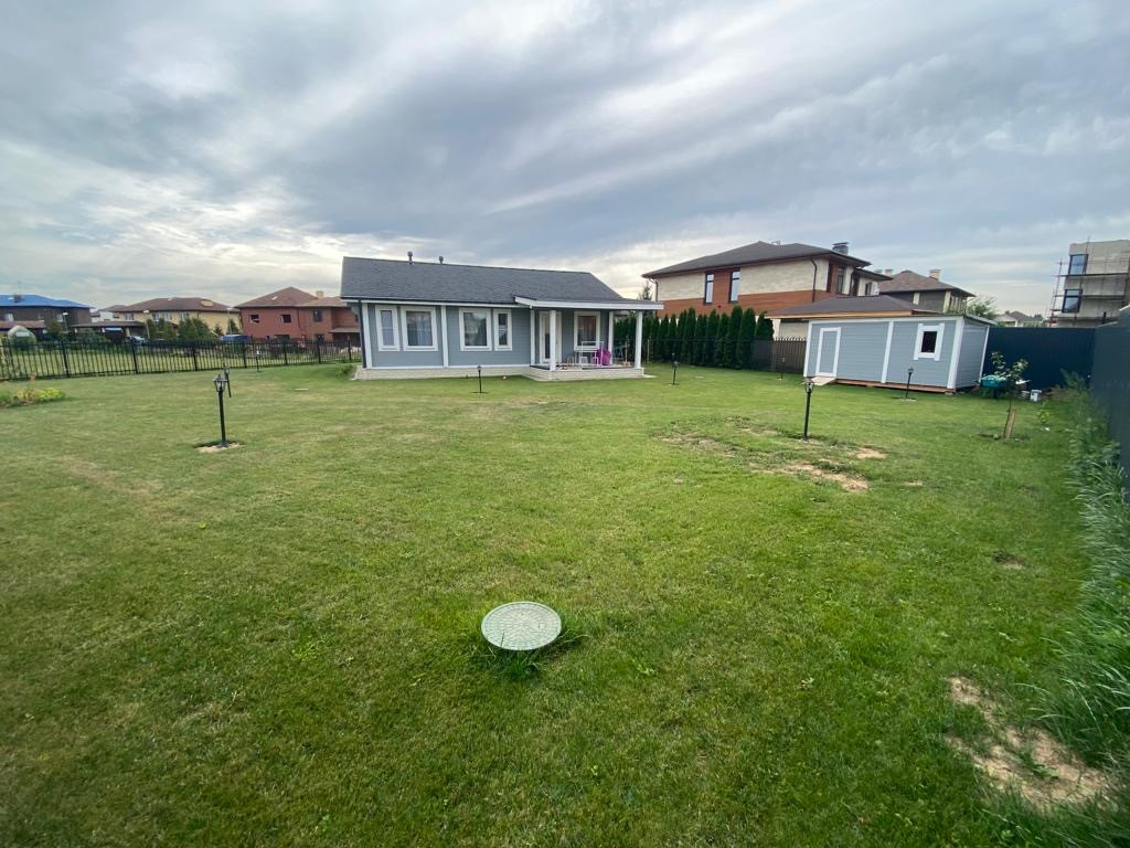 Одноэтажный дом из клееного бруса. Фундамент-монолитная плита. Теплый пол по всему дому. Приточно-вытяжная вентиляция, деревянные окна, пол - массив дуба, На участке бытовка, газон, разведен дренаж, ливневая канализация. Все коммуникации в поселке центральные. Сетевой магазин при въезде в поселок, 2 детских сада в пешей доступности, большой пруд в 10 мин пешком от дома.
