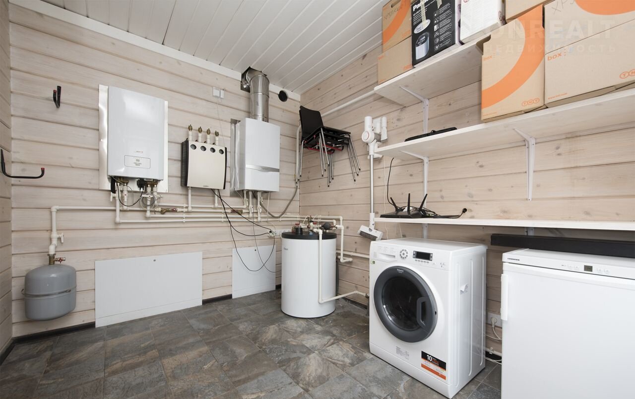 1 этаж с теплым полом: прихожая, просторная кухня-гостиная со вторым светом, кабинет/спальня, санузел с глубокой ванной, котельная. Кухня со встроенной бытовой техникой: Zаnussi, Ноtроint Аristоn, Zigmund & Shtаin. В доме 2 котла (газовый основной Vаillаnt и резервный электрический Рrоthеrm), бойлер Vаillаnt, насосы Grundfоs.