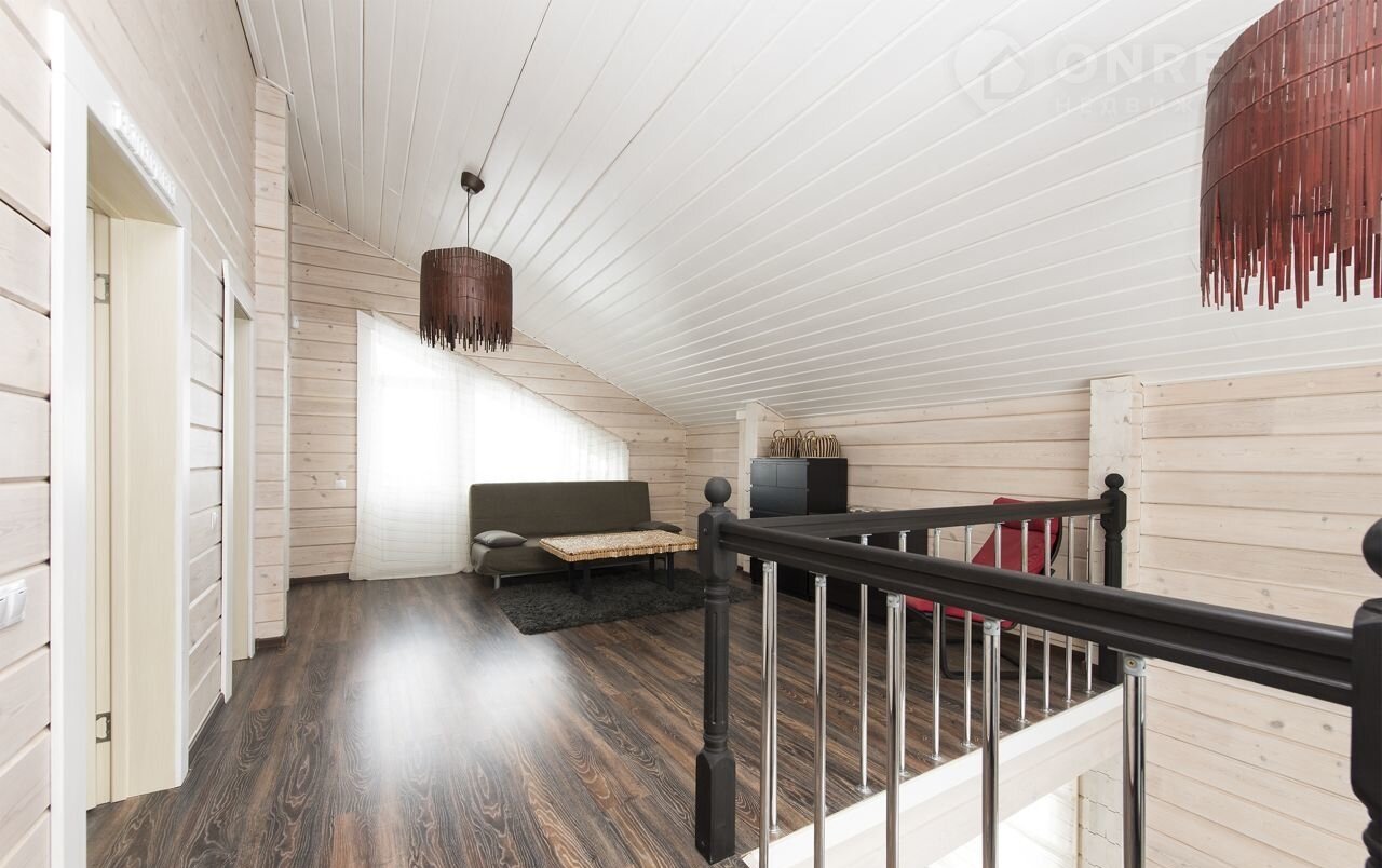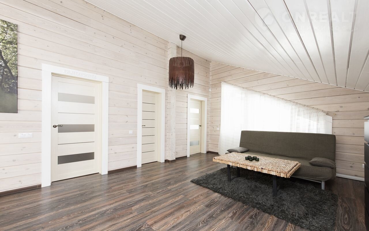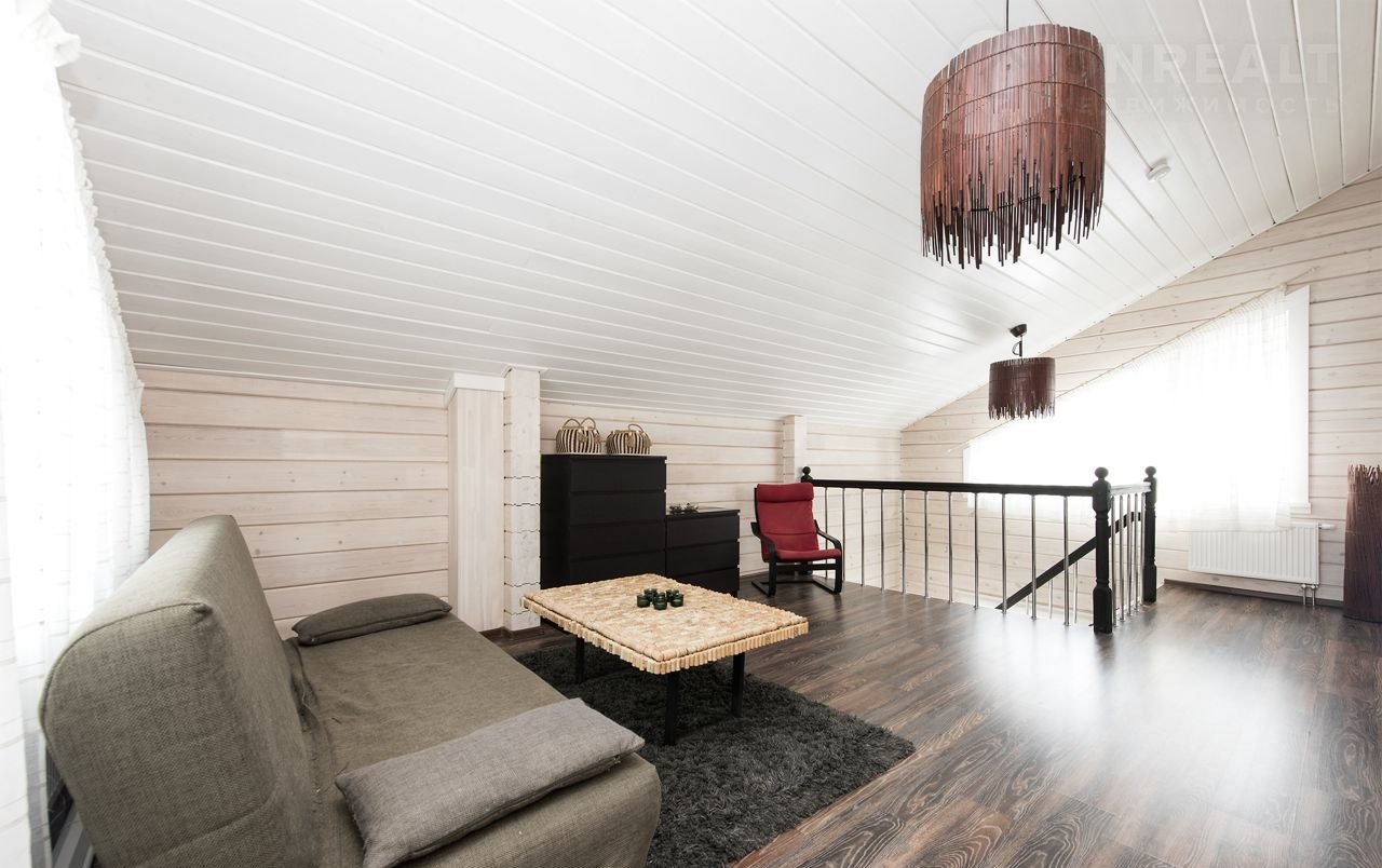 Брус – сосна, сечение: 200 (см) ширина, 180 (см) высота. Межэтажные перекрытия - дерево, окна – ПВХ (2-х камерные), кровля - металлочерепица, окраска дома - Тikkurilа. Фундамент - плита. Террасы – натуральная лиственница. Теплые зоны - 132,6 кв м, холодные зоны - 28,3 кв м.