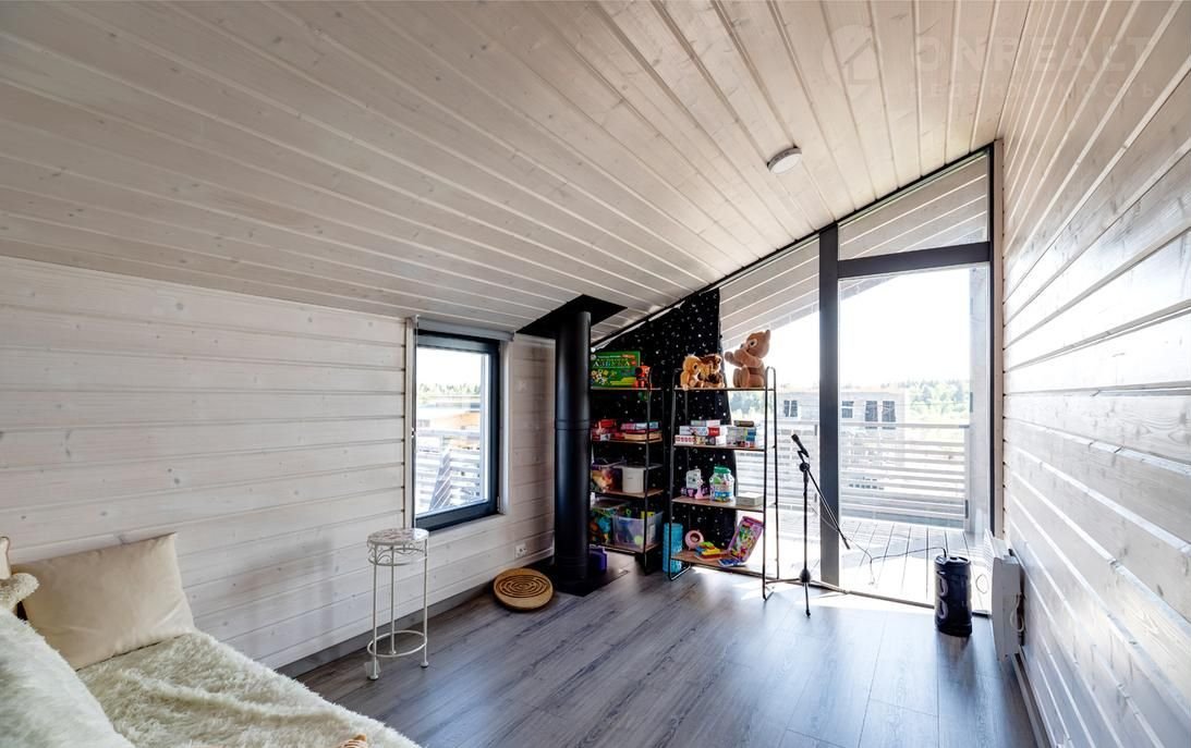 У дома кровля – фальцевая, окна – тройные стеклопакеты. В доме уютная гостиная с камином, оборудованная кухня-столовая, 4 спальни, кабинет, 2 санузла, патио, 2 террасы. Чистый и светлый дом полностью меблирован, оборудован всей необходимой техникой, теплые полы, установлена система рециркуляции воздуха, умный дом и видеонаблюдение.