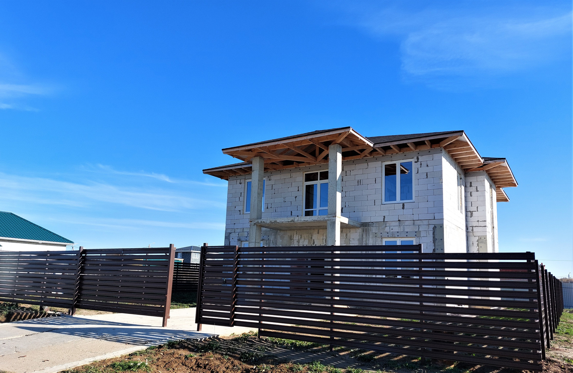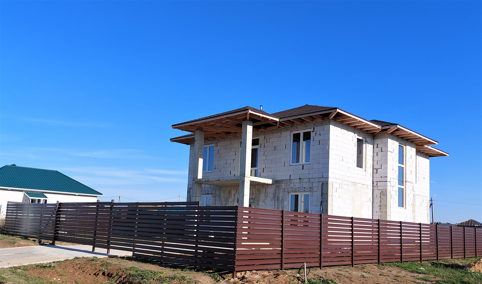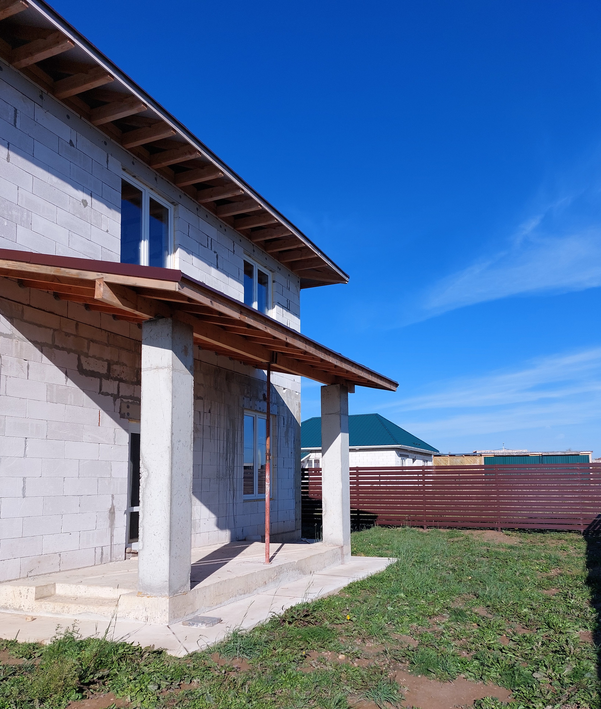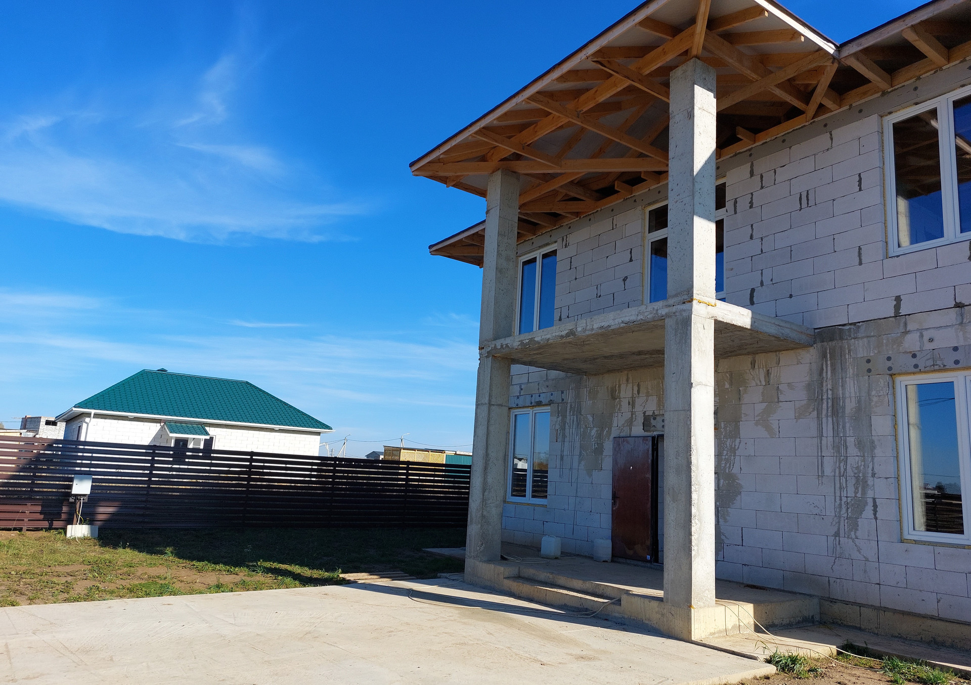 Участок 6 соток правильной формы, газ – центральный, подведен к участку, водоснабжение- колодец, канализация- септик, по периметру участка возведен забор, откатные ворота с электроприводом, забетонированный участок для стоянки 3х машин, сделан отвод дренажа фундамента, электричество- 3х фазное15 кВт.