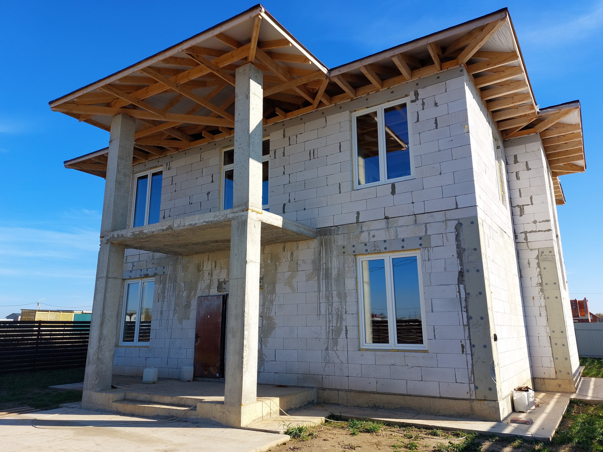 Продается большой двухэтажный коттедж, выполненный в классическом стиле, общей площадью 290 кв.м. Фундамент – монолитный ленточный, материал стен – пеноблок, крыша – мягкая кровля. Планировка 1 этажа предусматривает 1 спальню, большую кухню-гостиную, гардеробную, санузел, хозяйственную комнату, большой холл, террасу. Удобная лестница на 2-й этаж шириной 1,5 м. Планировка 2 этажа предусматривает большую мастер-спальню с гардеробной комнатой и санузлом, 2 спальни, санузел, балкон с великолепным видом на пруд, прекрасная перспектива, холл. Есть возможность объединить балкон с холлом и сделать еще одну спальню. Есть возможность обустроить на 3 этаже небольшое помещение площадью 30м под бильярд или другие потребности. Большие окна, много света. Незавершенность строительств позволяет внести свои корректировки под Ваши желания и вкус.