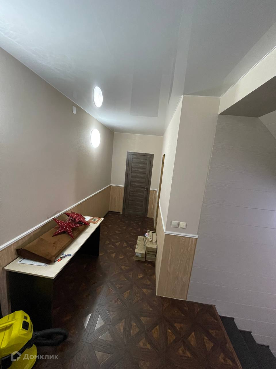 На третьем этаже готовы к использованию гардеробная и спальня - отделка дерево.