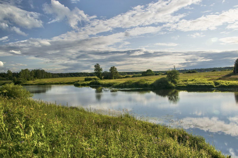Участок правильной формы, 27 на 18, ровный, расположен вблизи водоема и леса.