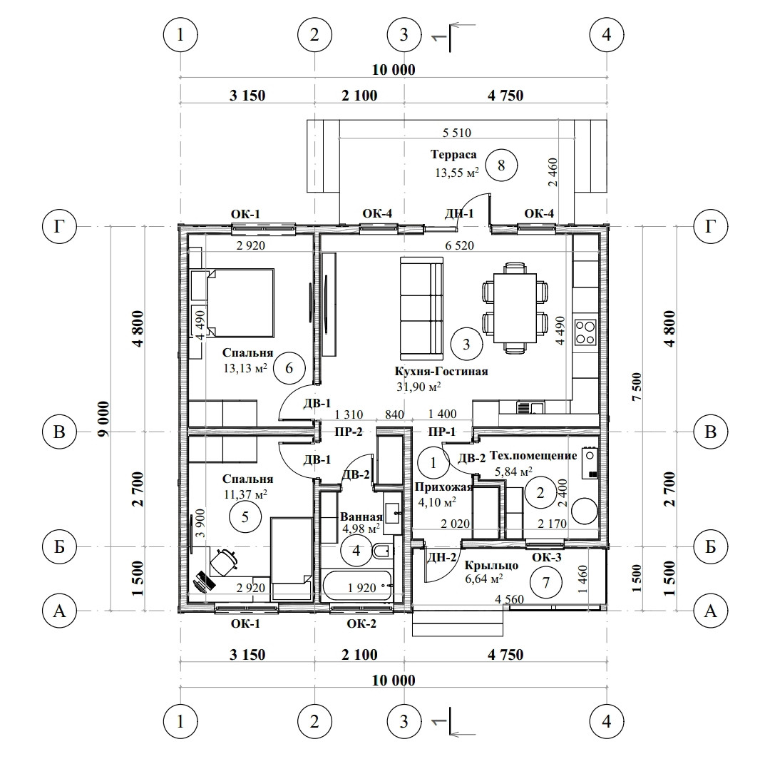 Общая площадь 91 м2