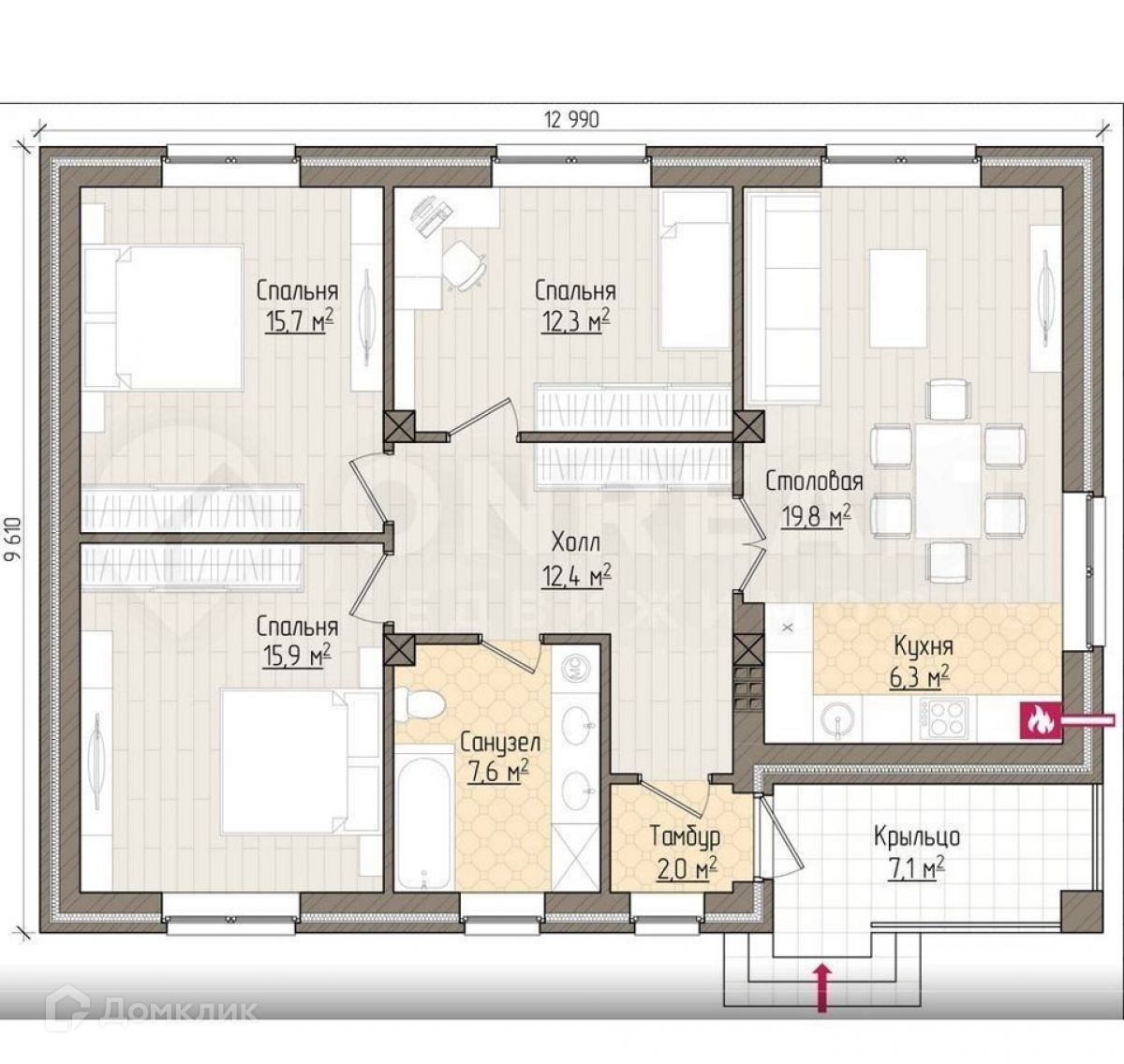 -Три спальни 15,7м2, 15,9м2, 12,3м2
