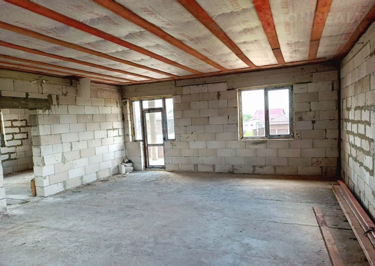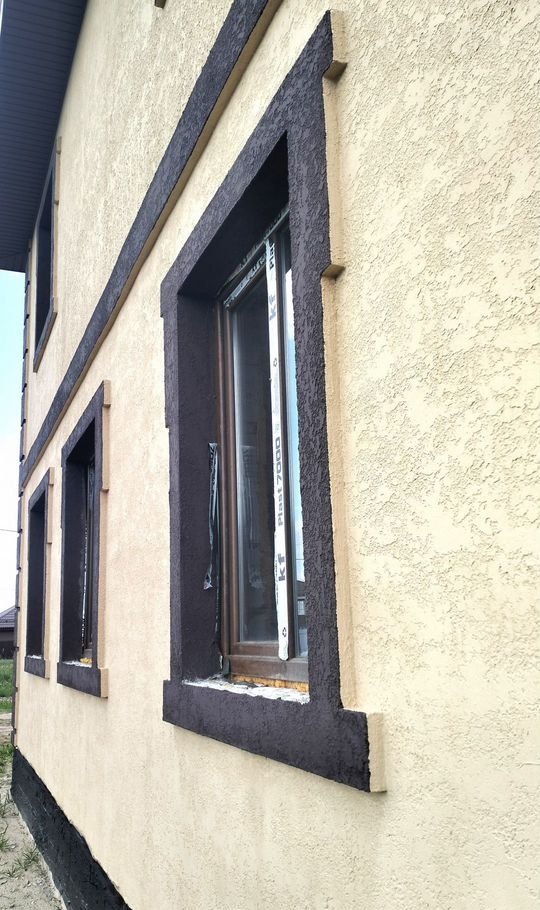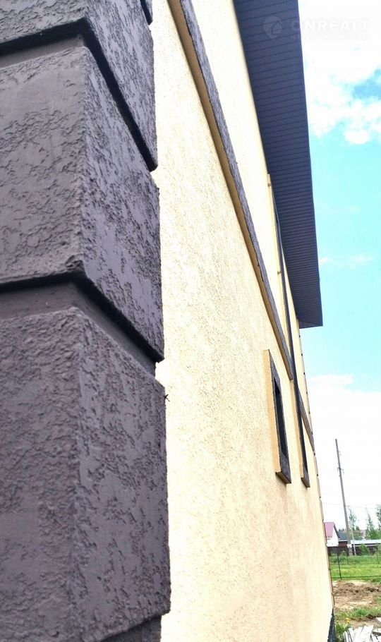 Дом построен из газосиликатных блоков (30 х 60 х 25), утеплен пенопластовыми пластинами, с внешней стороны дома выполнена декоративная штукатурка.