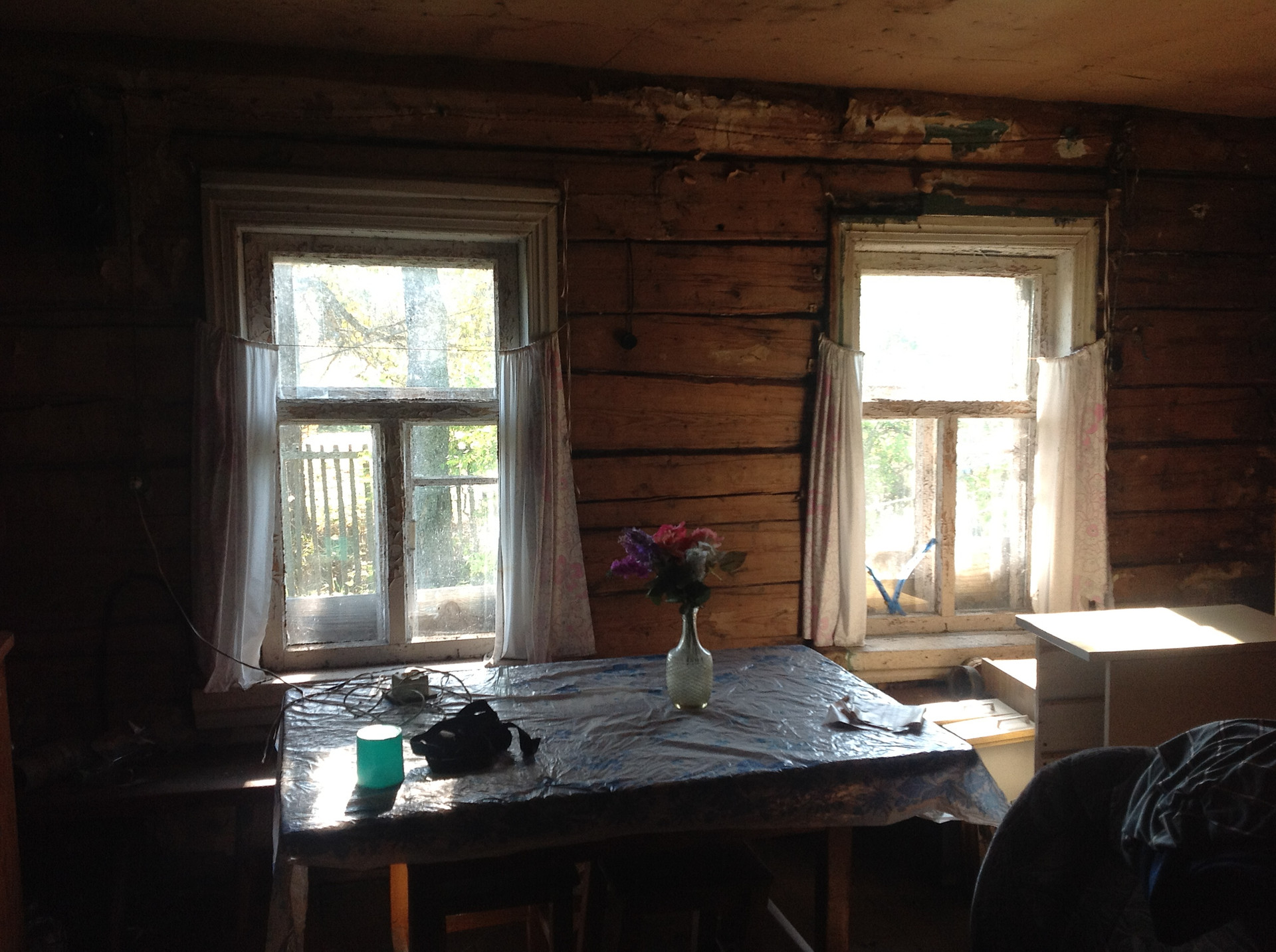 В доме две большие комнаты. Печь (печное отопление). Свет.