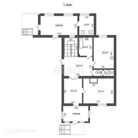 - На 1 этаже находится: гараж 24 кв.м, мастерская 19 кв.м, прихожая 10,2 кв.м, жилая комната с камином 17,2 кв.м, просторная кухня в 13,8 кв.м, а также раздельный санузел.