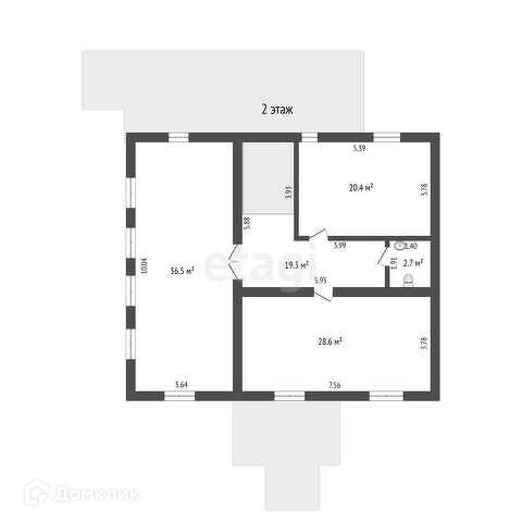 - На 2 этаже находится: 3 жилые комнаты (36,5, 28,6, 20,4 кв.м), туалет и выход на крытую веранду - 19 кв.м.