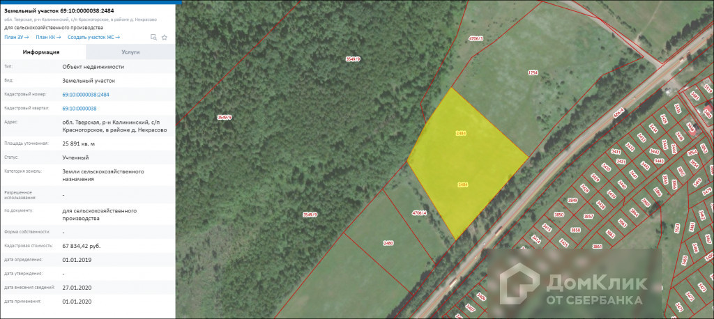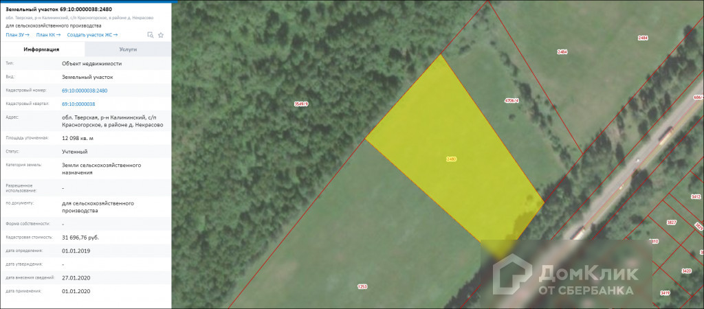 20 км от г. Твери, Калининский район, дер. Некрасово. Земельные участки общей площадью 3 га., с/х назначения (разрешённое использование для сельхоз. производства). Расположены вдоль Старицкого  шоссе. Кадастровые номера 69: 10: 000003862480, 69: 10: 0000038: 2484